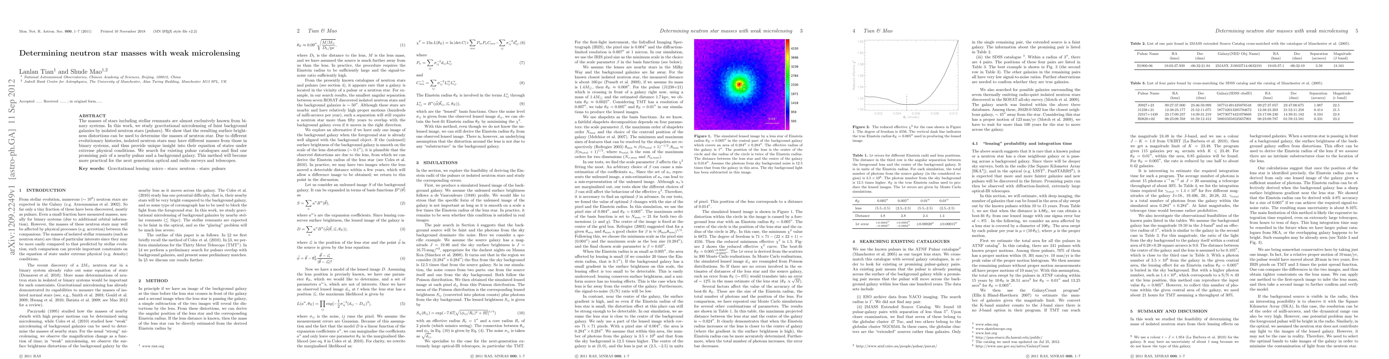 This paper explores the use of weak gravitational microlensing to determine the masses of isolated neutron stars by analyzing surface brightness distortions caused by pulsars. This method offers a unique way to study neutron star masses independent of binary systems, providing valuable insights into their equation of state under extreme conditions.