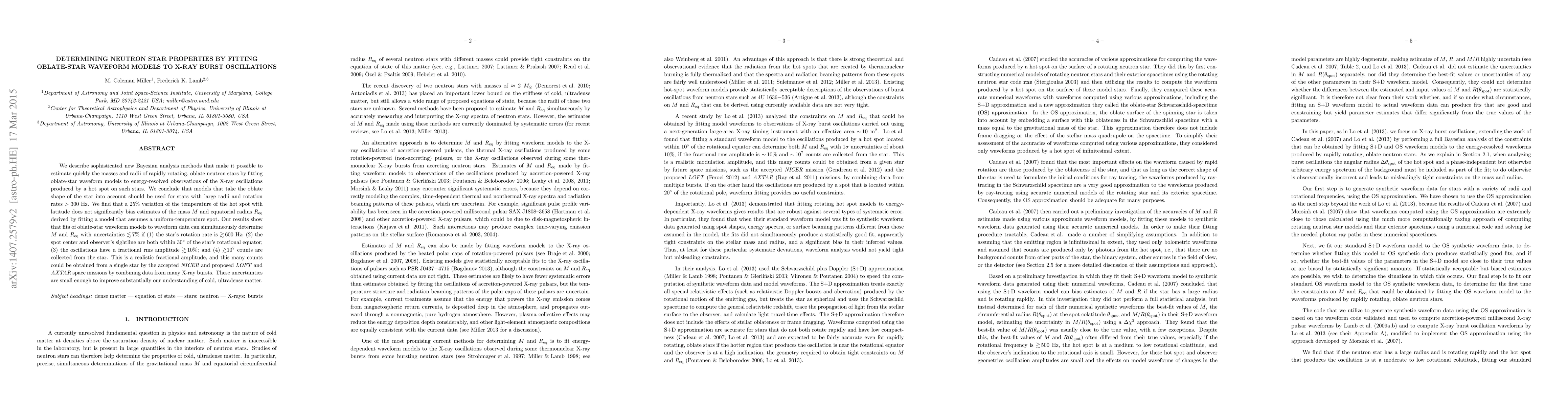 We describe sophisticated new Bayesian analysis methods that make it possible to estimate quickly the masses and radii of rapidly rotating, oblate neutron stars by fitting oblate-star waveform models to energy-resolved observations of the X-ray oscillations produced by a hot spot on such stars. We conclude that models that take the oblate shape of the star into account should be used for stars with large radii and rotation rates $>300$ Hz. We find that a 25% variation of the temperature of the hot spot with latitude does not significantly bias estimates of the mass $M$ and equatorial radius $R_{\rm eq}$ derived by fitting a model that assumes a uniform-temperature spot. Our results show that fits of oblate-star waveform models to waveform data can simultaneously determine $M$ and $R_{\rm eq}$ with uncertainties $\lesssim\,$7% if (1) the star's rotation rate is $\gtrsim\,$$600$ Hz; (2) the spot center and observer's sightline are both within $30^\circ$ of the star's rotational equator; (3) the oscillations have a fractional rms amplitude $\gtrsim\,$10%; and (4) $\gtrsim$$10^7$ counts are collected from the star. This is a realistic fractional amplitude, and this many counts could be obtained from a single star by the accepted NICER and proposed LOFT and AXTAR space missions by combining data from many X-ray bursts. These uncertainties are small enough to improve substantially our understanding of cold, ultradense matter.