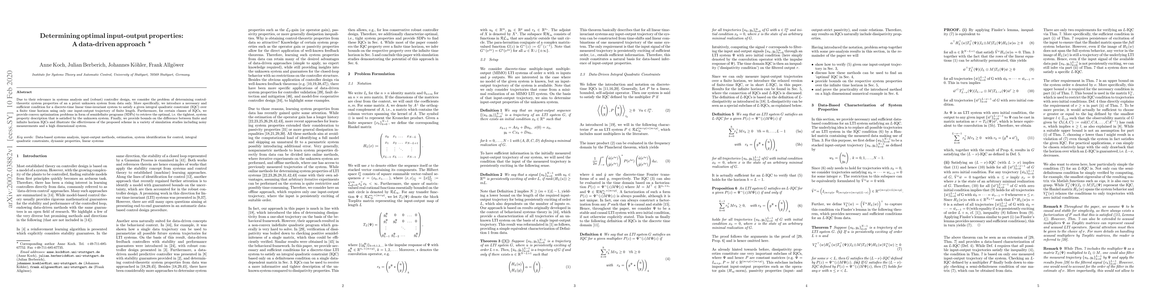 This paper proposes a data-driven method to determine optimal input-output properties for unknown systems using a single input-output trajectory. It introduces a necessary and sufficient condition for satisfying integral quadratic constraints and provides convex optimization problems to find the tightest system property descriptions.