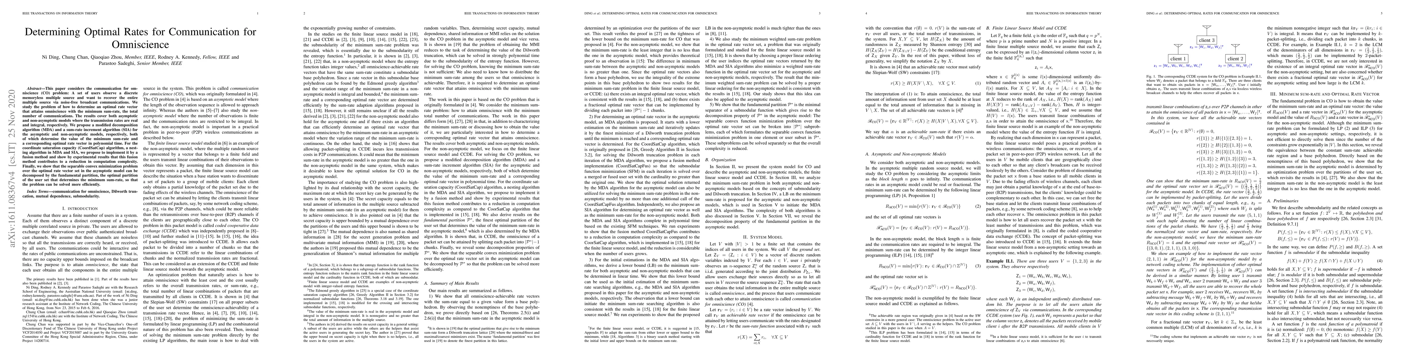 This paper considers the communication for omniscience (CO) problem: A set of users observe a discrete memoryless multiple source and want to recover the entire multiple source via noise-free broadcast communications. We study the problem of how to determine an optimal rate vector that attains omniscience with the minimum sum-rate, the total number of communications. The results cover both asymptotic and non-asymptotic models where the transmission rates are real and integral, respectively. We propose a modified decomposition algorithm (MDA) and a sum-rate increment algorithm (SIA) for the asymptotic and non-asymptotic models, respectively, both of which determine the value of the minimum sum-rate and a corresponding optimal rate vector in polynomial time. For the coordinate saturation capacity (CoordSatCap) algorithm, a nesting algorithm in MDA and SIA, we propose to implement it by a fusion method and show by experimental results that this fusion method contributes to a reduction in computation complexity. Finally, we show that the separable convex minimization problem over the optimal rate vector set in the asymptotic model can be decomposed by the fundamental partition, the optimal partition of the user set that determines the minimum sum-rate, so that the problem can be solved more efficiently.