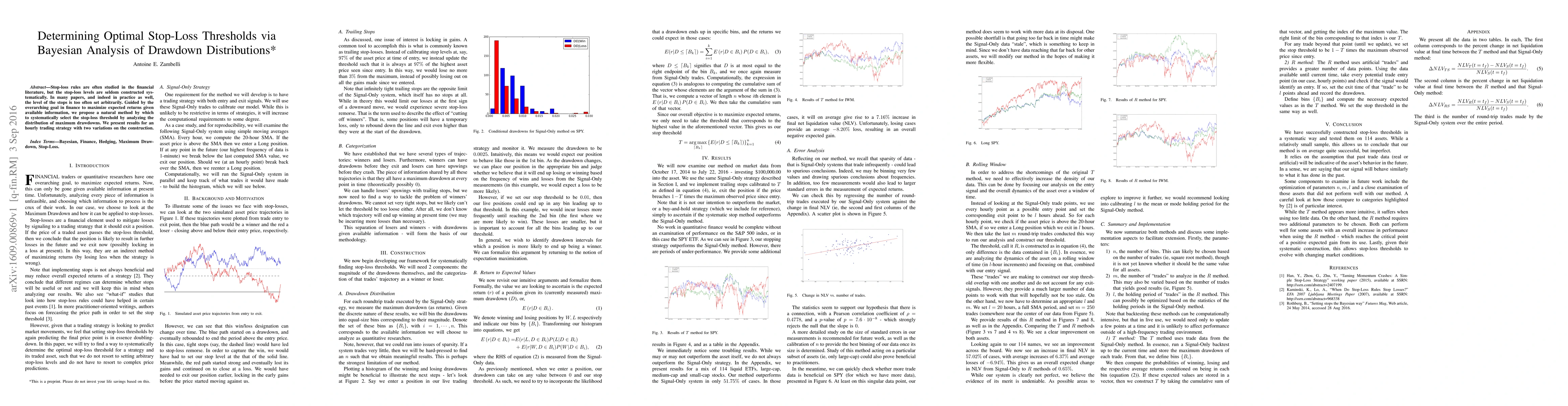This paper proposes a method to systematically select stop-loss thresholds using Bayesian analysis of drawdown distributions in finance, aiming to maximize expected returns given available information.