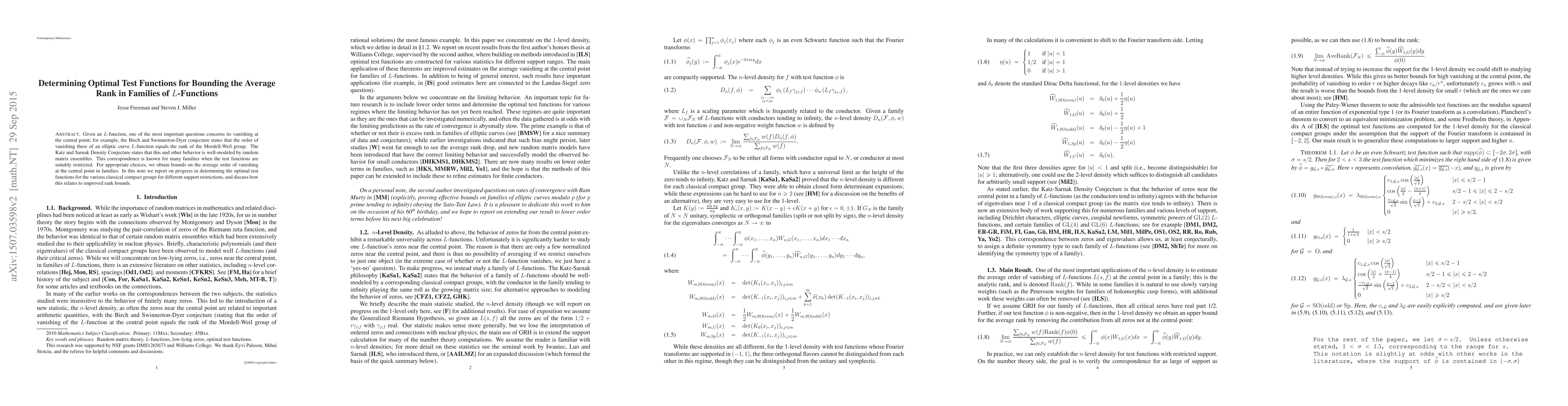 This paper explores optimal test functions for bounding the average rank in families of $L$-functions, aiming to model the behavior of these functions through random matrix ensembles. The study focuses on the Katz and Sarnak Density Conjecture and reports on advancements in determining the best test functions for various classical compact groups under different support restrictions, which can lead to improved rank bounds.