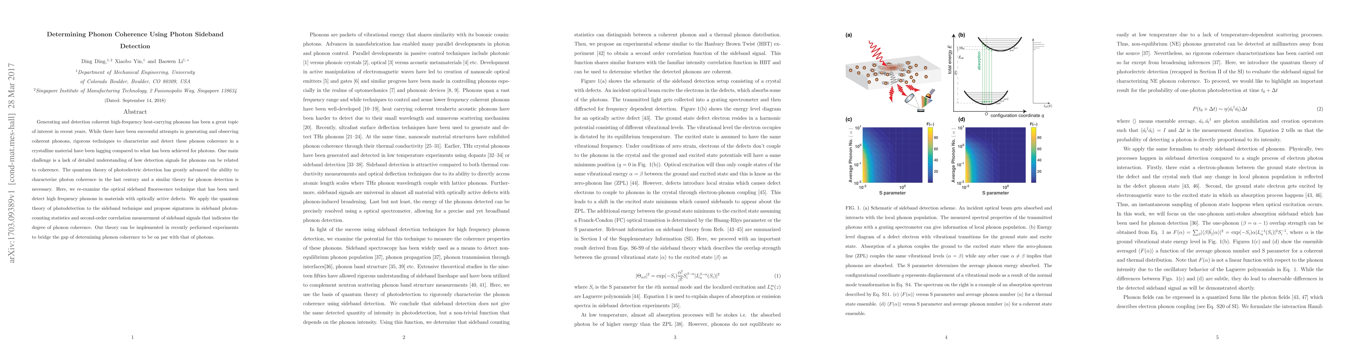 This paper proposes a method to determine phonon coherence using photon sideband detection, applying quantum theory of photodetection to optical sideband fluorescence. It identifies statistical and correlation signatures in sideband photon-counting to characterize phonon coherence, aiming to match photon coherence characterization techniques.
