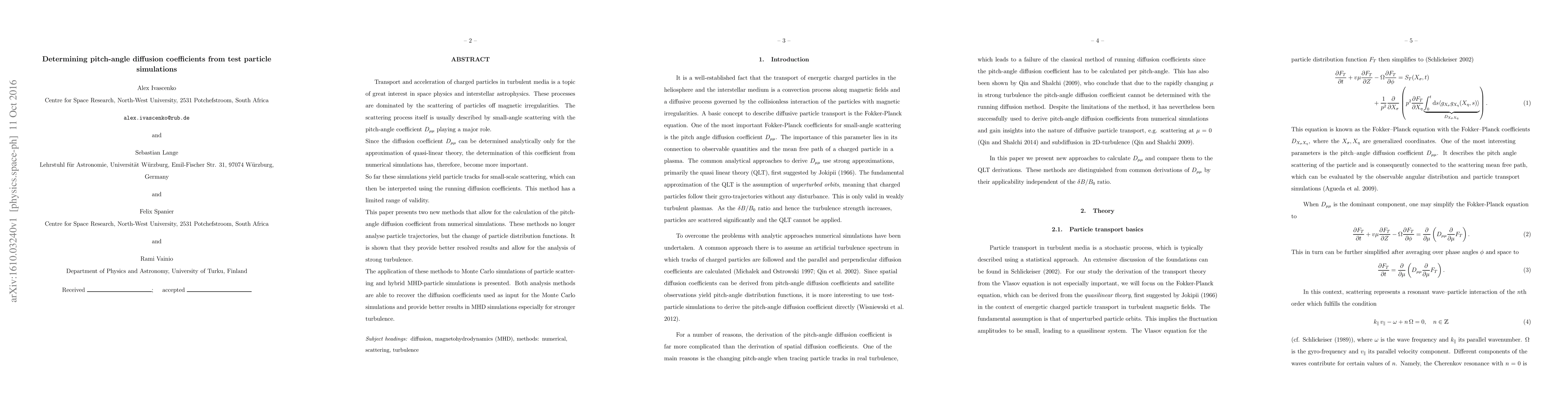 This paper introduces two novel methods for calculating pitch-angle diffusion coefficients from numerical simulations, moving beyond traditional trajectory analysis to examine changes in particle distribution functions. These methods yield more accurate results, especially in scenarios involving strong turbulence, and are applied to Monte Carlo and hybrid MHD-particle simulations.