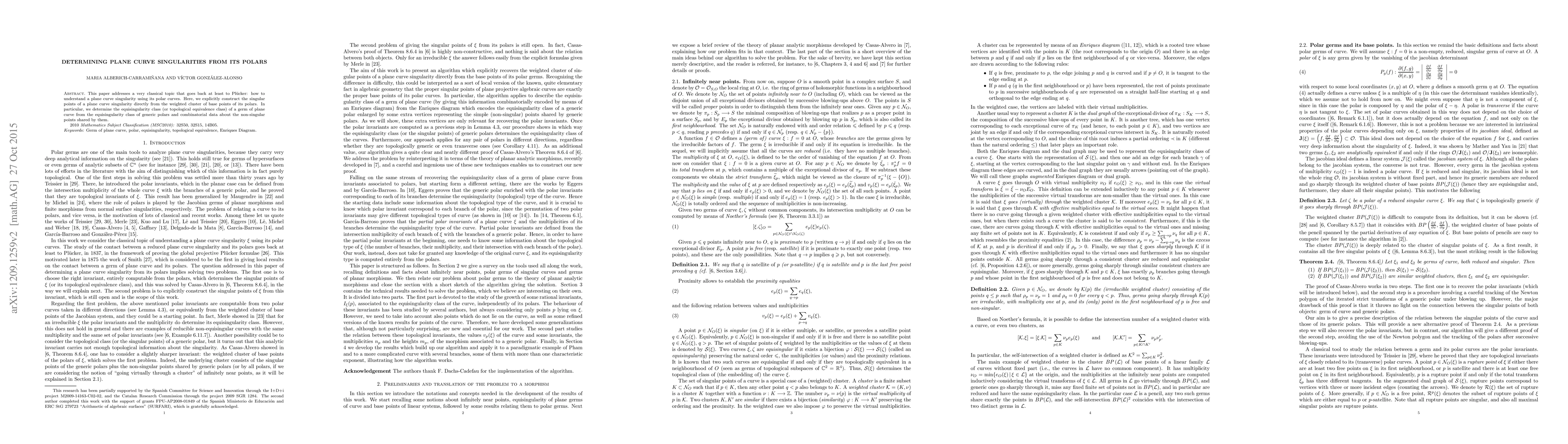 This paper constructs singular points of plane curve singularities from the weighted cluster of base points of its polars, determining the equisingularity class of the curve based on the equisingularity class of generic polars and combinatorial data of shared non-singular points.