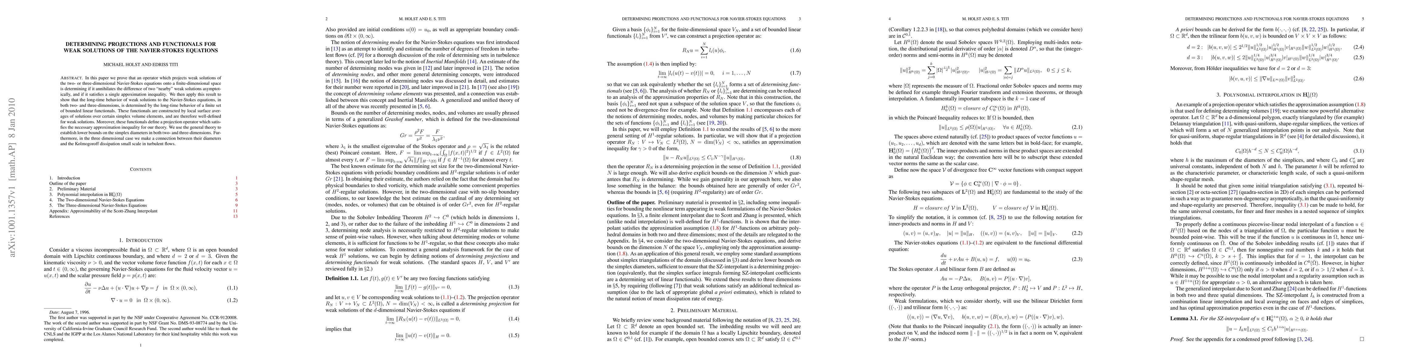 A research paper proves that certain operators can determine the long-term behavior of Navier-Stokes solutions, showing their projections on finite-dimensional spaces are key to understanding asymptotic behavior.