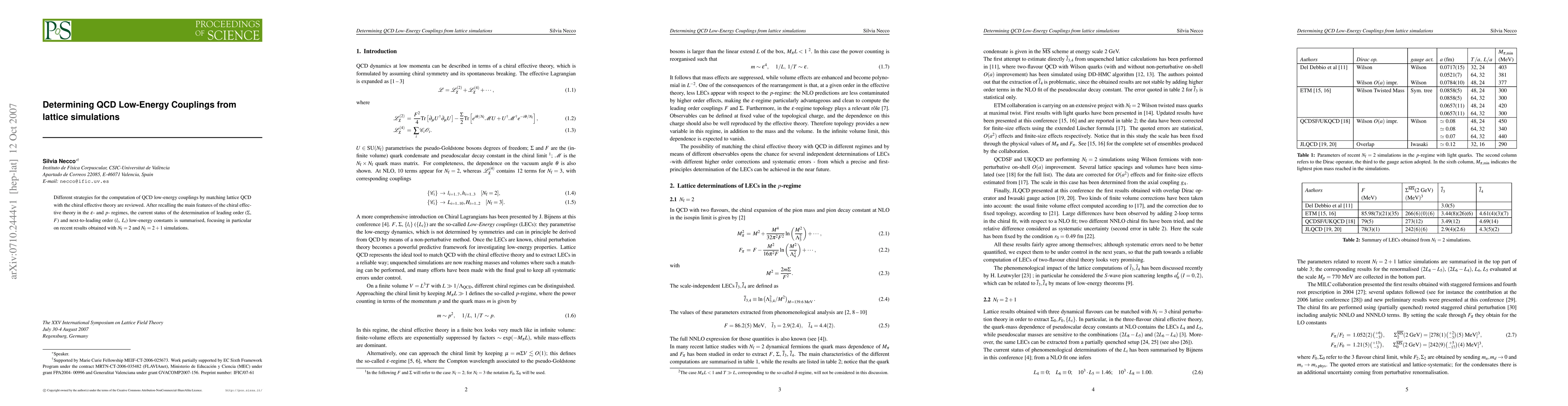 Different strategies for the computation of QCD low-energy couplings by matching lattice QCD with the chiral effective theory are reviewed. After recalling the main features of the chiral effective theory in the epsilon- and p- regimes, the current status of the determination of leading order (Sigma, F) and next-to-leading order (l_i, L_i) low-energy constants is summarised, focusing in particular on recent results obtained with N_f=2 and N_f=2+1 simulations.