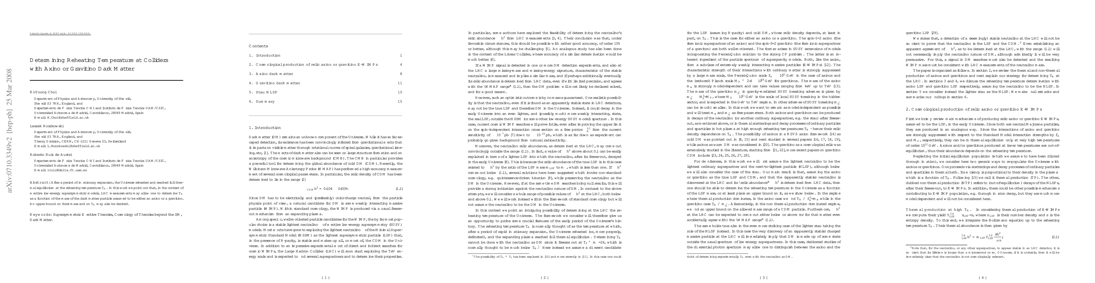 The research utilizes effective low-energy supersymmetric models to determine the reheating temperature (T_R) at colliders, specifically focusing on axino or gravitino dark matter scenarios.