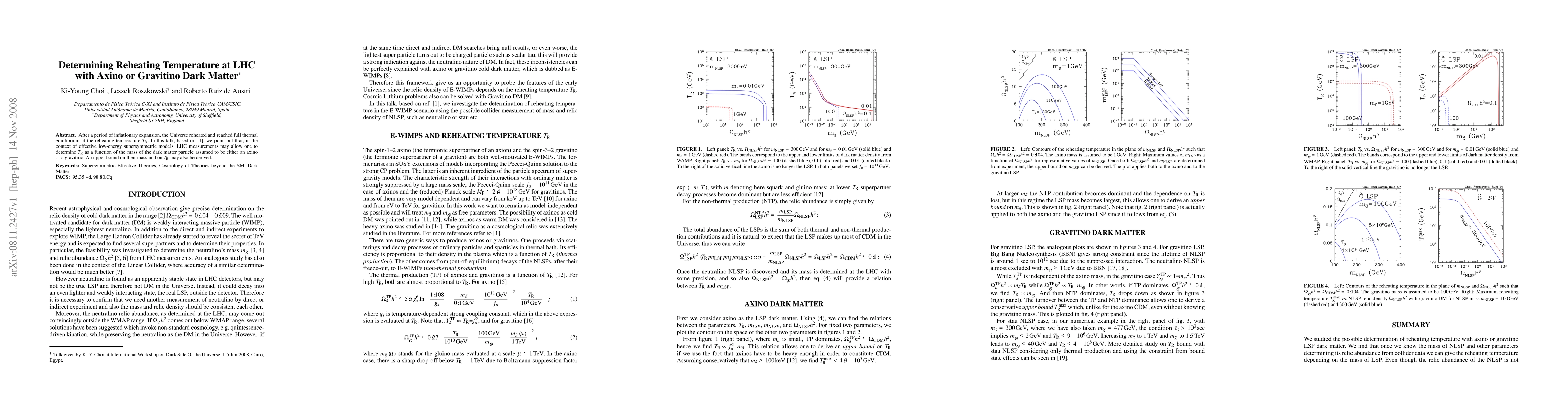 This paper discusses how LHC measurements can determine the reheating temperature of the Universe after inflation, assuming dark matter is either an axino or a gravitino. It derives an upper bound on the mass of these particles and the reheating temperature based on effective low-energy supersymmetric models.