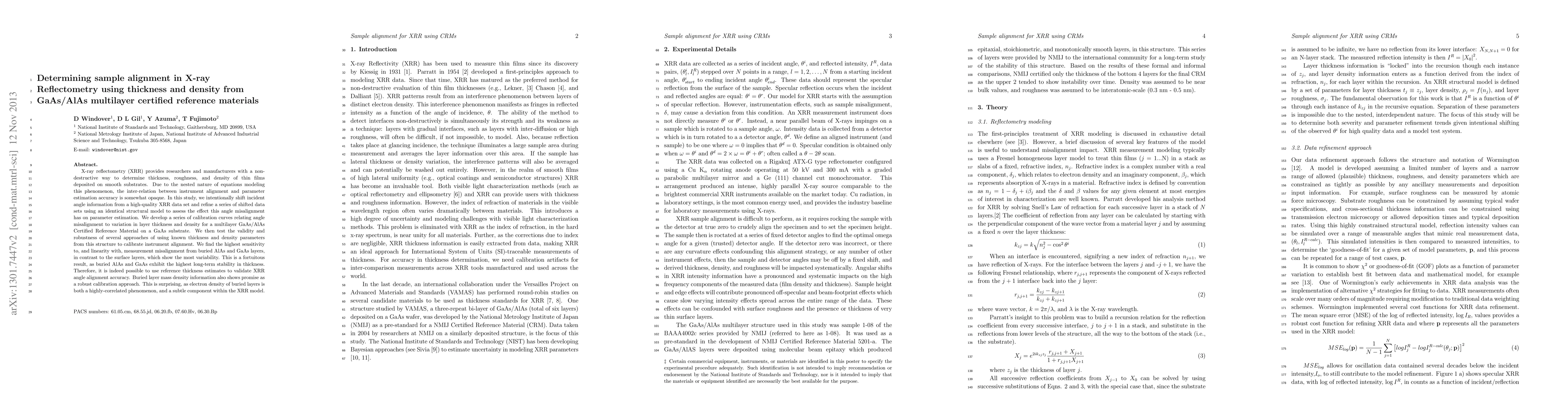 X-ray reflectometry (XRR) provides researchers and manufacturers with a non-destructive way to determine thickness, roughness, and density of thin films deposited on smooth substrates. Due to the nested nature of equations modeling this phenomenon, the inter-relation between instrument alignment and parameter estimation accuracy is somewhat opaque. In this study, we intentionally shift incident angle information contained in a high-quality XRR data set and refine this shifted data using an identical structural model to assess the effect angle misalignment has on parameter estimation. We develop a series of calibration curves relating data misalignment to variation with layer thickness and density for a multilayer GaAs/AlAs Certified Reference Material on a GaAs substrate. We then test the validity and robustness of several approaches of using known thickness and density parameters from this structure to calibrate instrument alignment. We find the highest sensitivity to and linearity with measurement misalignment from buried AlAs and GaAs layers, in contrast to the surface layers, which show the most instability. This is a fortuitous result, as buried AlAs and GaAs exhibit the highest long-term stability in thickness. Therefore, it is indeed possible to use reference thickness estimates to validate XRR angle alignment accuracy. Buried layer mass density information also shows promise as a robust calibration approach. This is suprising, as electron density of buried layers is both a highly-correlated phenomenon, and a subtle component in the XRR model.