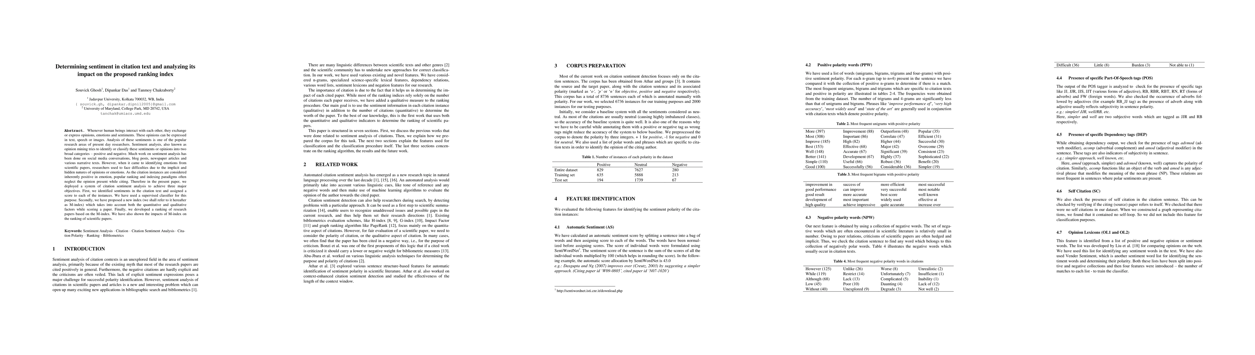 Whenever human beings interact with each other, they exchange or express opinions, emotions, and sentiments. These opinions can be expressed in text, speech or images. Analysis of these sentiments is one of the popular research areas of present day researchers. Sentiment analysis, also known as opinion mining tries to identify or classify these sentiments or opinions into two broad categories - positive and negative. In recent years, the scientific community has taken a lot of interest in analyzing sentiment in textual data available in various social media platforms. Much work has been done on social media conversations, blog posts, newspaper articles and various narrative texts. However, when it comes to identifying emotions from scientific papers, researchers have faced some difficulties due to the implicit and hidden nature of opinion. By default, citation instances are considered inherently positive in emotion. Popular ranking and indexing paradigms often neglect the opinion present while citing. In this paper, we have tried to achieve three objectives. First, we try to identify the major sentiment in the citation text and assign a score to the instance. We have used a statistical classifier for this purpose. Secondly, we have proposed a new index (we shall refer to it hereafter as M-index) which takes into account both the quantitative and qualitative factors while scoring a paper. Thirdly, we developed a ranking of research papers based on the M-index. We also try to explain how the M-index impacts the ranking of scientific papers.