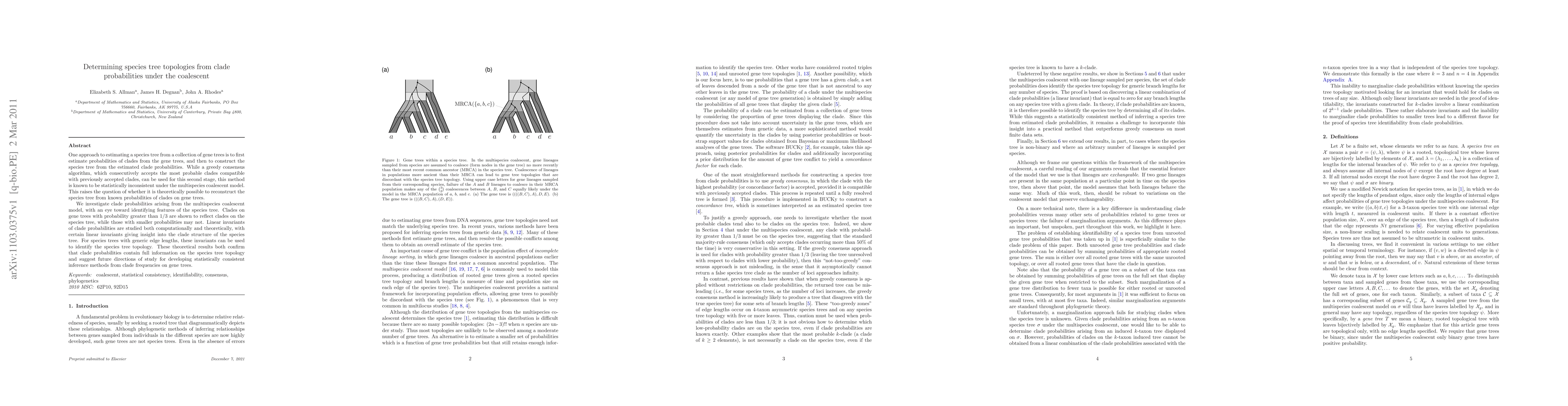 This paper explores the theoretical possibility of reconstructing species tree topologies from clade probabilities derived from gene trees under the multispecies coalescent model. It finds that clades with probabilities greater than 1/3 reliably reflect species tree clades, and introduces linear invariants of clade probabilities that can identify species tree topologies when edge lengths are generic.