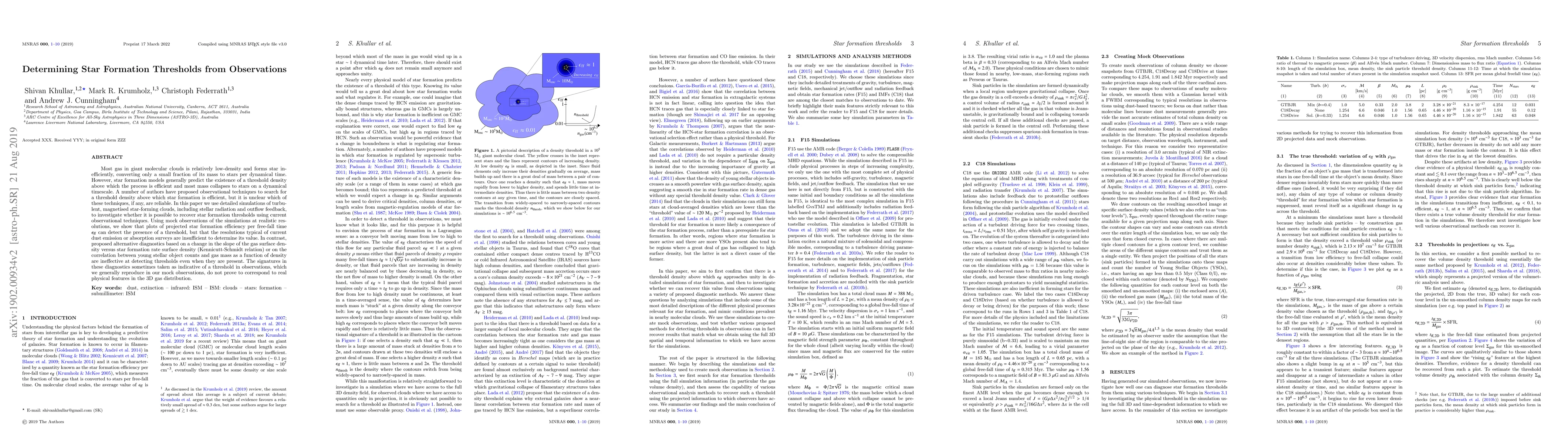 Most gas in giant molecular clouds is relatively low-density and forms star inefficiently, converting only a small fraction of its mass to stars per dynamical time. However, star formation models generally predict the existence of a threshold density above which the process is efficient and most mass collapses to stars on a dynamical timescale. A number of authors have proposed observational techniques to search for a threshold density above which star formation is efficient, but it is unclear which of these techniques, if any, are reliable. In this paper we use detailed simulations of turbulent, magnetised star-forming clouds, including stellar radiation and outflow feedback, to investigate whether it is possible to recover star formation thresholds using current observational techniques. Using mock observations of the simulations at realistic resolutions, we show that plots of projected star formation efficiency per free-fall time $\epsilon_{\rm ff}$ can detect the presence of a threshold, but that the resolutions typical of current dust emission or absorption surveys are insufficient to determine its value. In contrast, proposed alternative diagnostics based on a change in the slope of the gas surface density versus star formation rate surface density (Kennicutt-Schmidt relation) or on the correlation between young stellar object counts and gas mass as a function of density are ineffective at detecting thresholds even when they are present. The signatures in these diagnostics sometimes taken as indicative of a threshold in observations, which we generally reproduce in our mock observations, do not prove to correspond to real physical features in the 3D gas distribution.
