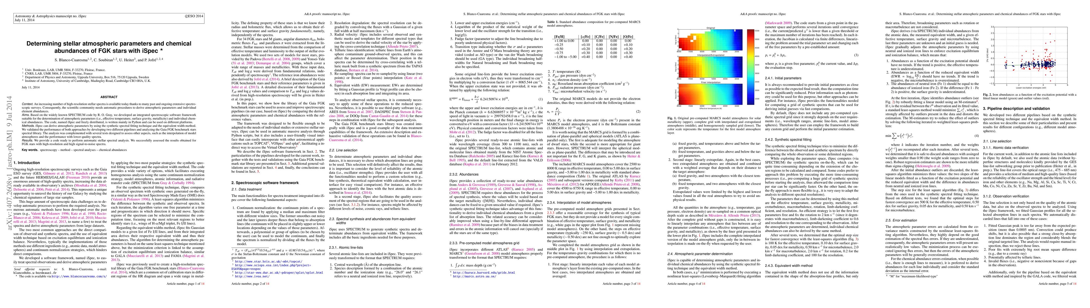 This paper presents iSpec, a new spectroscopic software framework developed to automatically determine atmospheric parameters and chemical abundances of FGK stars using high-resolution spectra. The code, based on the SPECTRUM code, employs synthetic spectral fitting and the equivalent width method, validated through analysis of Gaia FGK benchmark stars.