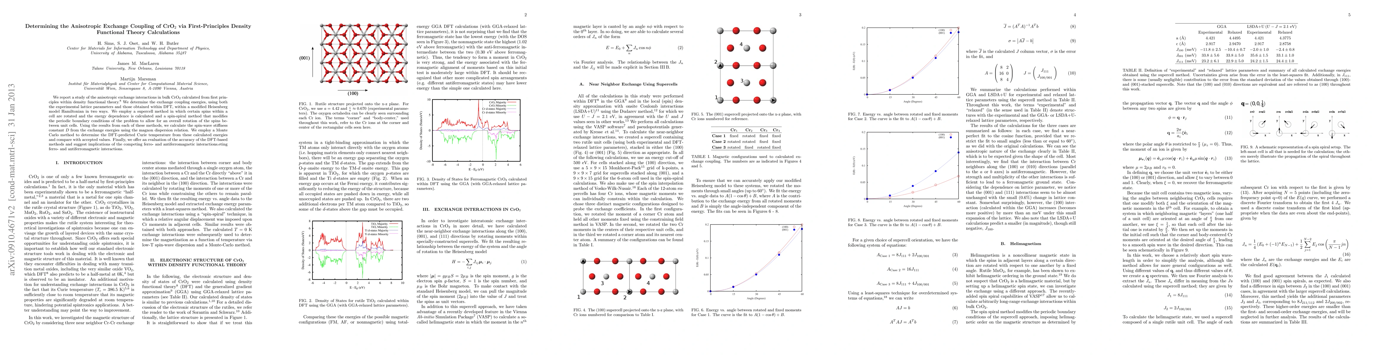 This study uses first-principles density functional theory to calculate anisotropic exchange interactions in bulk CrO_2, employing both supercell and spin-spiral methods to determine exchange coupling energies and the spin-wave stiffness constant D. The research also predicts the Curie temperature via Monte Carlo simulations and evaluates the accuracy of DFT-based methods.