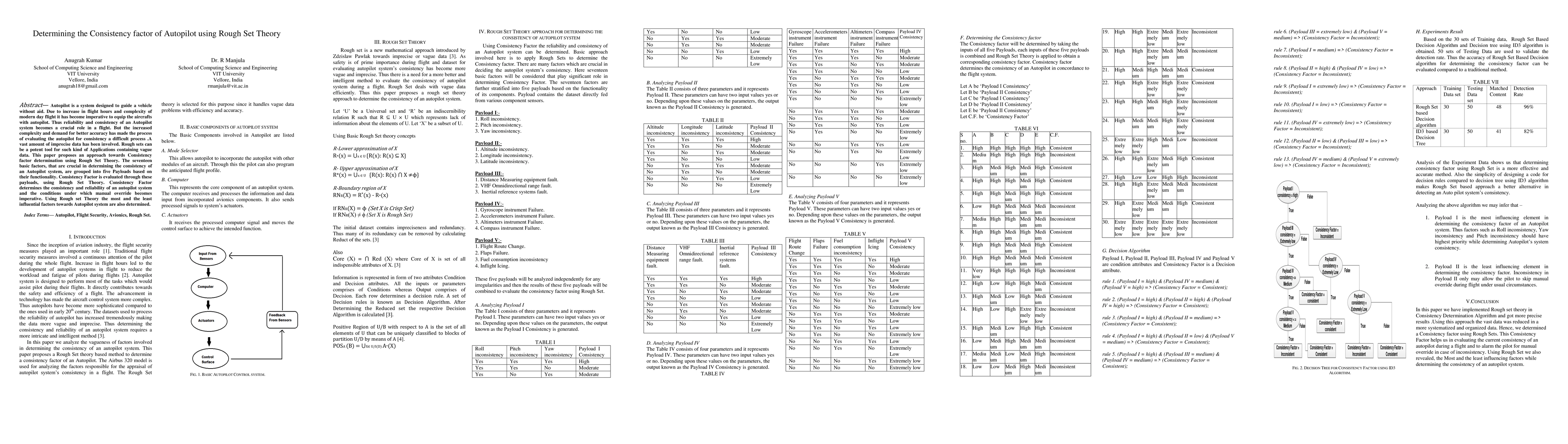 This paper proposes a method using Rough Set Theory to determine the consistency factor of an autopilot system, evaluating seventeen crucial factors grouped into five payloads. It identifies the most and least influential factors for autopilot reliability and consistency, addressing the challenges posed by imprecise data.