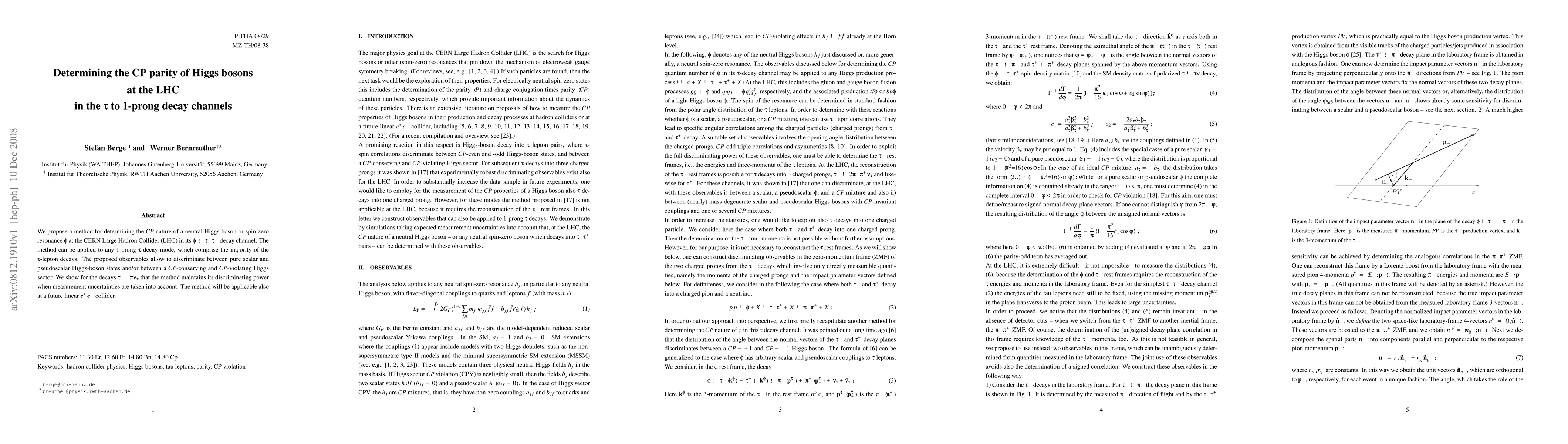 This paper proposes a method to determine the CP parity of neutral Higgs bosons at the LHC by analyzing $\tau$ lepton decays into one-prong final states, distinguishing between scalar and pseudoscalar states and CP-conserving versus CP-violating scenarios. The method remains effective even under measurement uncertainties and is also applicable to future linear colliders.