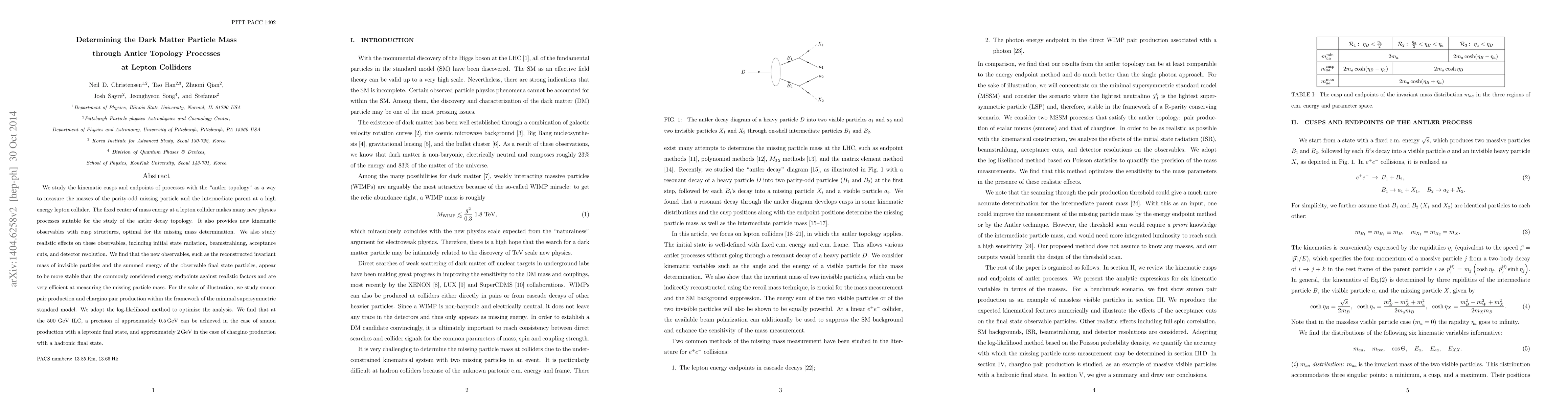 We study the kinematic cusps and endpoints of processes with the "antler topology" as a way to measure the masses of the parity-odd missing particle and the intermediate parent at a high energy lepton collider. The fixed center of mass energy at a lepton collider makes many new physics processes suitable for the study of the antler decay topology. It also provides new kinematic observables with cusp structures, optimal for the missing mass determination. We also study realistic effects on these observables, including initial state radiation, beamstrahlung, acceptance cuts, and detector resolution. We find that the new observables, such as the reconstructed invariant mass of invisible particles and the summed energy of the observable final state particles, appear to be more stable than the commonly considered energy endpoints against realistic factors and are very efficient at measuring the missing particle mass. For the sake of illustration, we study smuon pair production and chargino pair production within the framework of the minimal supersymmetric standard model. We adopt the log-likelihood method to optimize the analysis. We find that at the 500 GeV ILC, a precision of approximately 0.5 GeV can be achieved in the case of smuon production with a leptonic final state, and approximately 2 GeV in the case of chargino production with a hadronic final state.