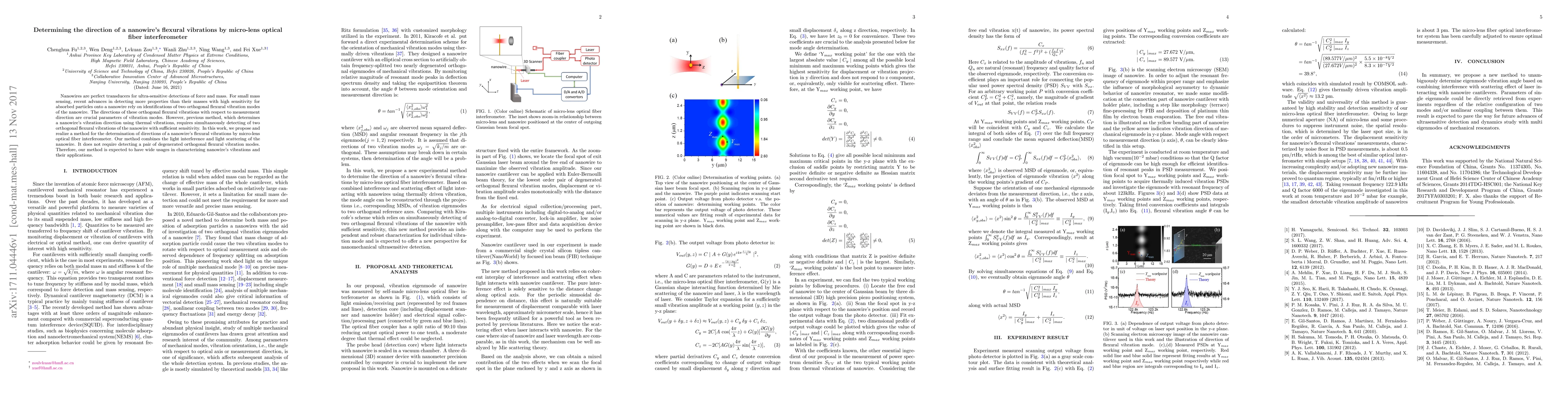 This paper proposes a novel method using a micro-lens optical fiber interferometer to determine the direction of a nanowire's flexural vibrations without the need for detecting degenerated orthogonal modes, enhancing sensitivity and application potential for mass sensing.