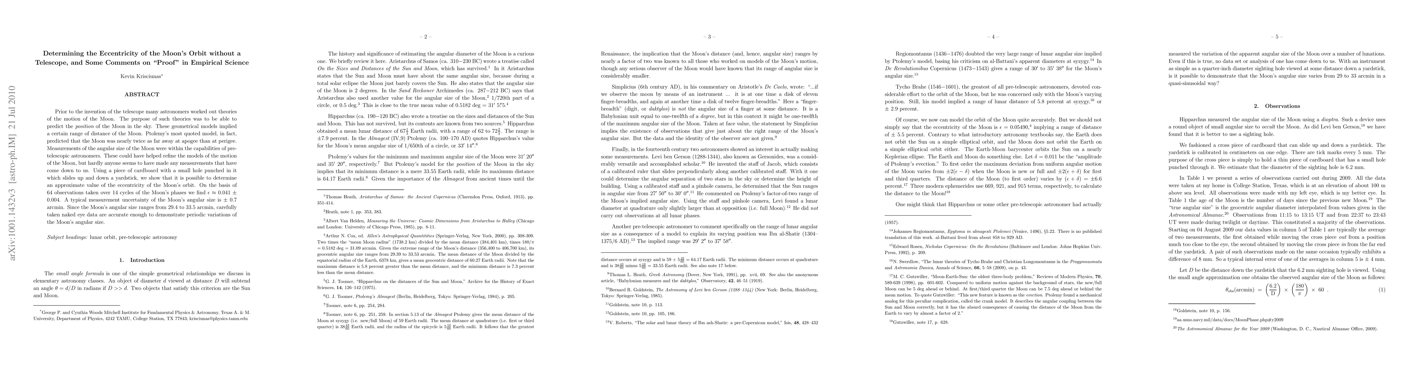 Prior to the invention of the telescope many astronomers worked out theories of the motion of the Moon. The purpose of such theories was to be able to predict the position of the Moon in the sky. These geometrical models implied a certain range of distance of the Moon. Ptolemy's model, in fact, predicted that the Moon was nearly twice as far away at apogee than at perigee. Measurements of the angular size of the Moon were within the capabilities of pre-telescopic astronomers. These could have helped refine the models of the motion of the Moon, but hardly anyone seems to have made any measurements that have come down to us. Using a piece of cardboard with a small hole punched in it which slides up and down a yardstick, we show that it is possible to determine an approximate value of the eccentricity of the Moon's orbit. From 64 observations taken over 14 cycles of the Moon's phases we find find epsilon ~ 0.041 +/- 0.004. A typical measurement uncertainty of the Moon's angular size is +/- 0.7 arcmin. Since the Moon's angular size ranges from 29.4 to 33.5 arcmin, carefully taken naked eye data are accurate enough to demonstrate the periodic variations of the Moon's angular size.