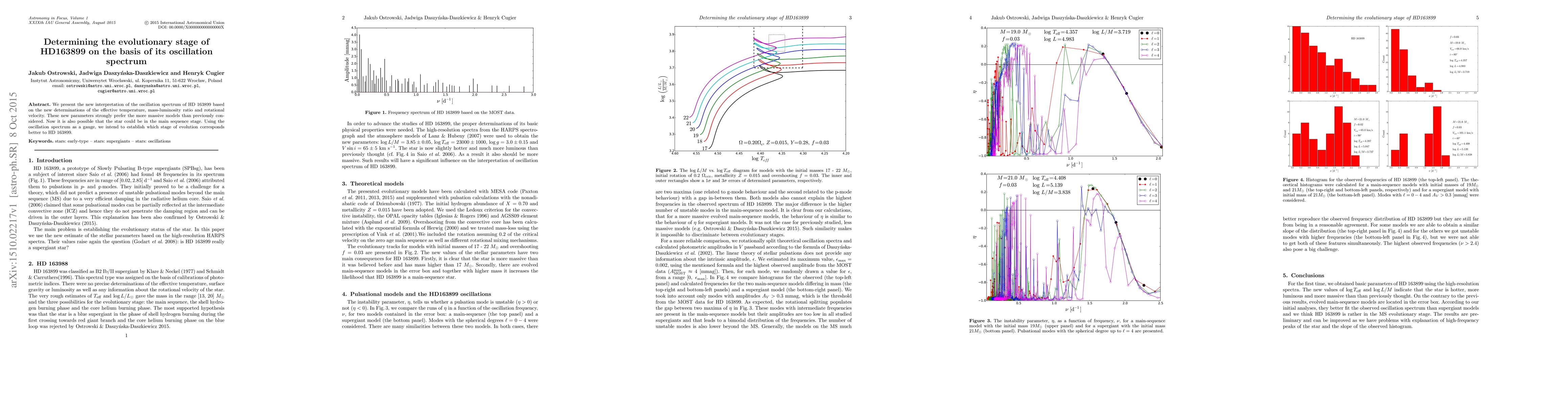 We present the new interpretation of the oscillation spectrum of HD 163899 based on the new determinations of the effective temperature, mass-luminosity ratio and rotational velocity. These new parameters strongly prefer the more massive models than previously considered. Now it is also possible that the star could be in the main sequence stage. Using the oscillation spectrum as a gauge, we intend to establish which stage of evolution corresponds better to HD 163899.