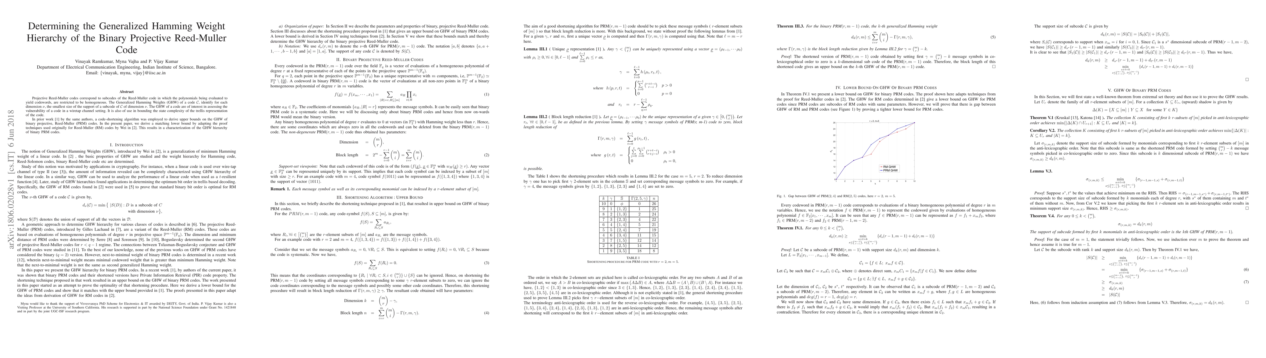 Projective Reed-Muller codes correspond to subcodes of the Reed-Muller code in which the polynomials being evaluated to yield codewords, are restricted to be homogeneous. The Generalized Hamming Weights (GHW) of a code ${\cal C}$, identify for each dimension $\nu$, the smallest size of the support of a subcode of ${\cal C}$ of dimension $\nu$. The GHW of a code are of interest in assessing the vulnerability of a code in a wiretap channel setting. It is also of use in bounding the state complexity of the trellis representation of the code. In prior work by the same authors, a code-shortening algorithm was employed to derive upper bounds on the GHW of binary projective, Reed-Muller (PRM) codes. In the present paper, we derive a matching lower bound by adapting the proof techniques used originally for Reed-Muller (RM) codes by Wei. This results in a characterization of the GHW hierarchy of binary PRM codes.