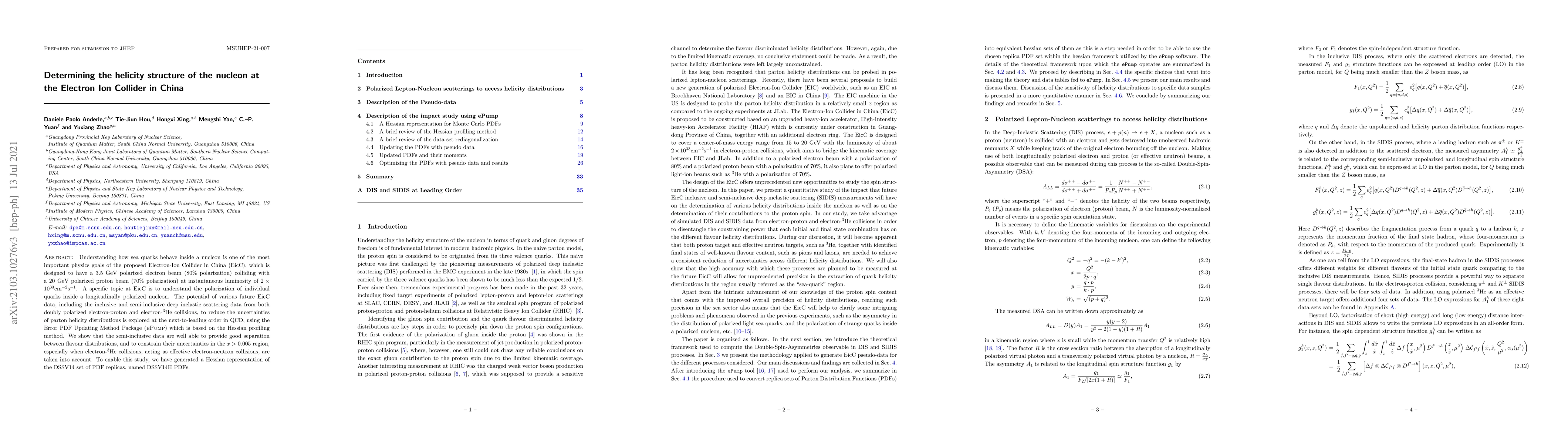 This paper explores the potential of the Electron-Ion Collider in China (EicC) to determine the helicity structure of nucleons by analyzing sea quark behavior through polarized electron-proton and electron-$^3{\rm He}$ collisions. It uses the Error PDF Updating Method Package (ePump) to reduce uncertainties in parton helicity distributions, showing that semi-inclusive data can effectively constrain uncertainties in the $x>0.005$ region.