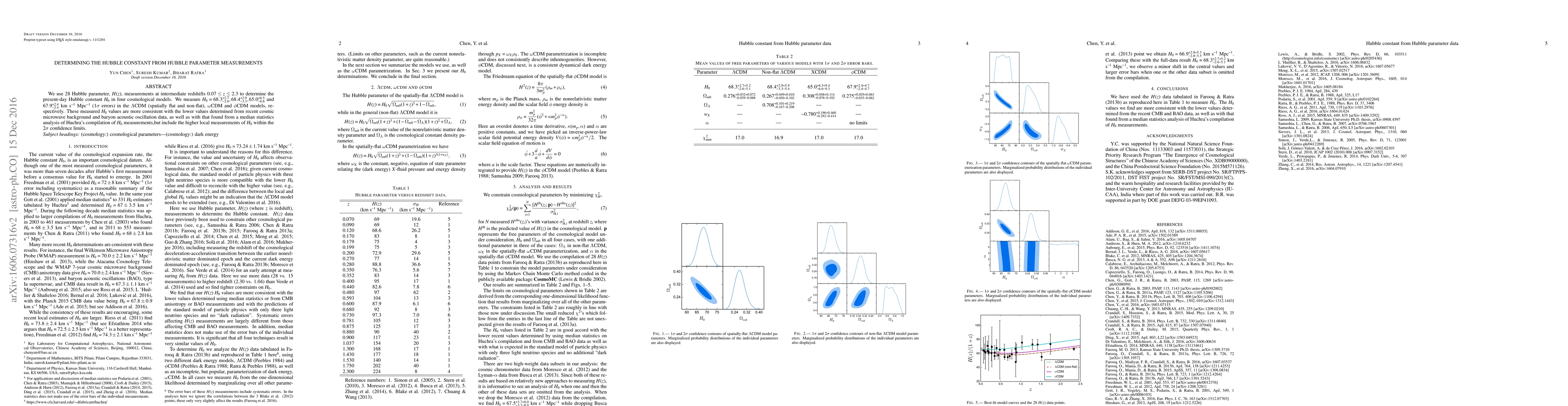We use 28 Hubble parameter, $H(z)$, measurements at intermediate redshifts $0.07 \leq z \leq 2.3$ to determine the present-day Hubble constant $H_0$ in four cosmological models. We measure $H_0 = 68.3^{ +2.7}_{ -2.6 }, 68.4^{ +2.9 }_{ -3.3 }, 65.0^{ +6.5 }_{ -6.6 }$ and $ 67.9^{ +2.4}_{-2.4}$ km s${}^{-1}$ Mpc${}^{-1}$ (1$\sigma$ errors) in the $\Lambda$CDM (spatially flat and non-flat), $\omega$CDM and $\phi$CDM models, respectively. These measured $H_0$ values are more consistent with the lower values determined from recent cosmic microwave background and baryon acoustic oscillation data, as well as with that found from a median statistics analysis of Huchra's compilation of $H_0$ measurements,but include the higher local measurements of $H_0$ within the 2$\sigma$ confidence limits.