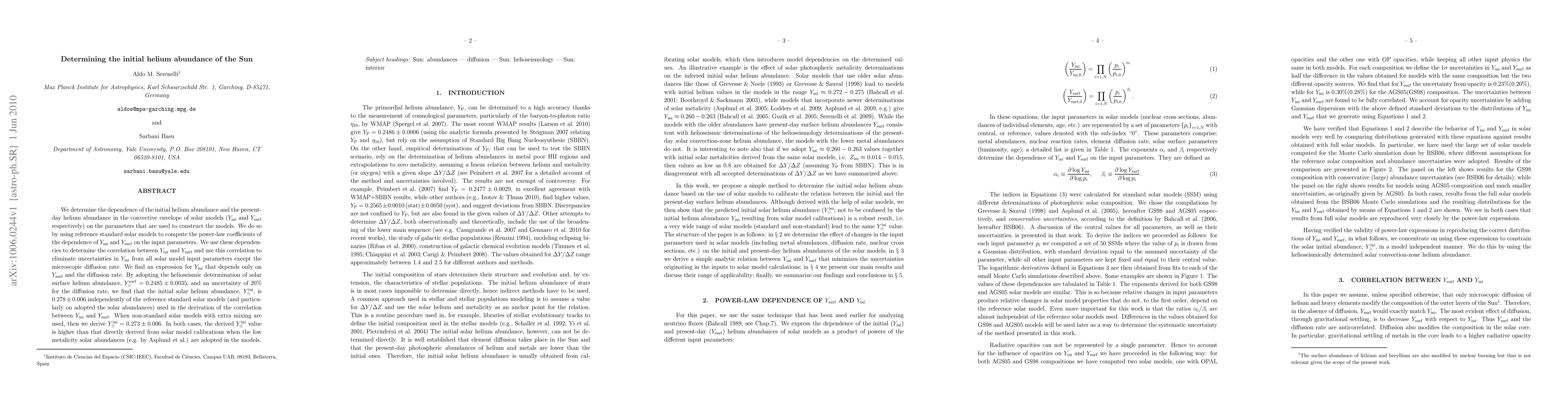 This paper determines the initial helium abundance of the Sun, $\yims$, by analyzing the dependence of present-day helium abundance in solar models on various input parameters. The study finds $\yims = 0.278 \pm 0.006$ using standard solar models, which is higher than values derived from low metallicity solar abundances.