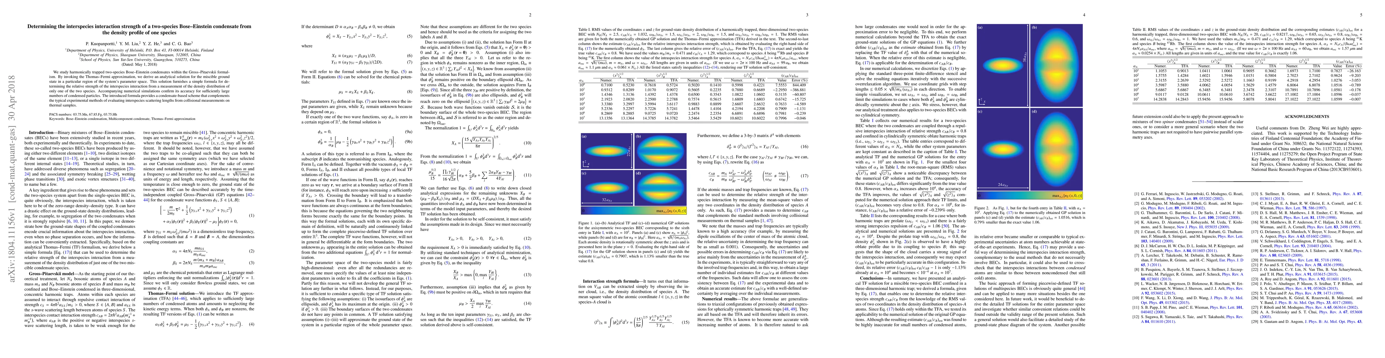 This paper derives an analytical solution for the ground state of harmonically trapped two-species Bose-Einstein condensates using the Gross-Pitaevskii formalism and Thomas-Fermi approximation, providing a formula to determine interspecies interaction strength from the density profile of one species, validated by numerical simulations.