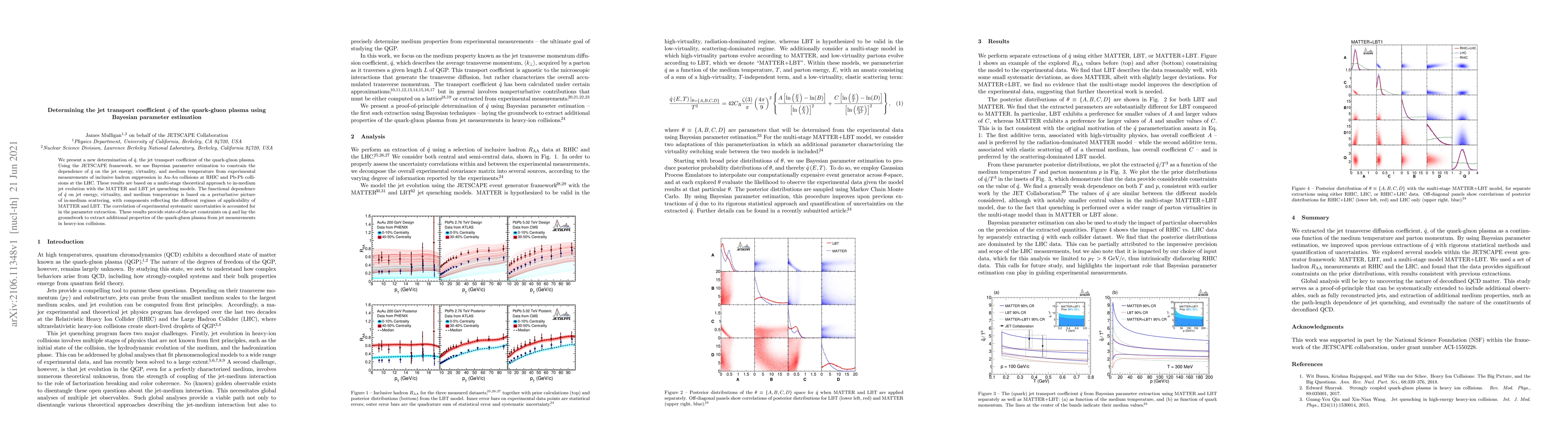 This paper determines the jet transport coefficient $\hat{q}$ of quark-gluon plasma using Bayesian parameter estimation within the JETSCAPE framework, correlating experimental data from RHIC and LHC heavy-ion collisions to extract $\hat{q}$'s dependence on jet energy, virtuality, and medium temperature. The results provide advanced constraints on $\hat{q}$ and pave the way for further plasma property extractions.
