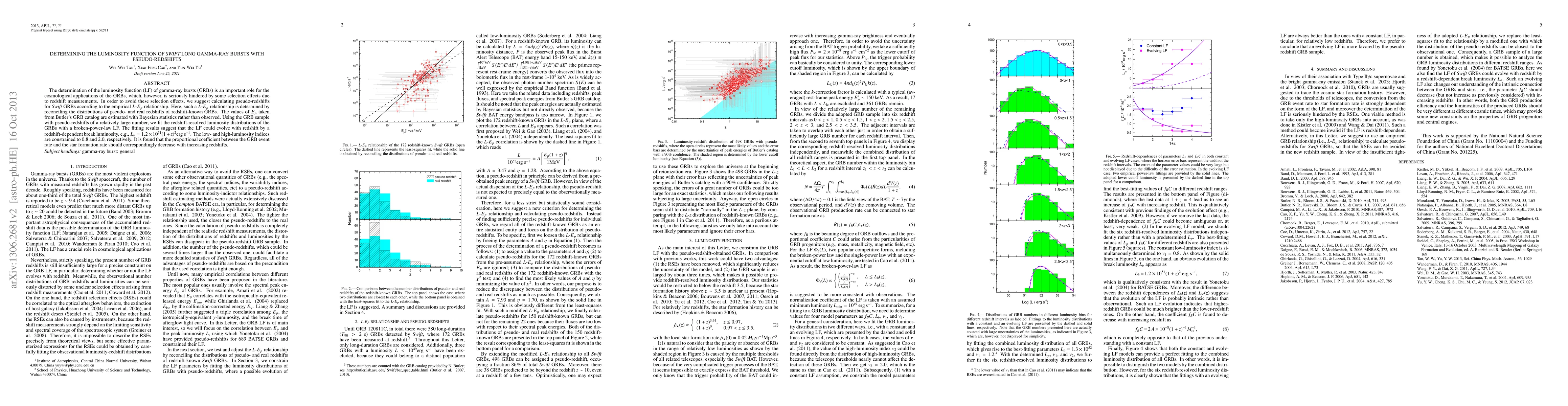 This paper determines the luminosity function of Swift long gamma-ray bursts using pseudo-redshifts to avoid selection effects from actual redshift measurements. The study finds a broken-power-law luminosity function evolving with redshift, with a break luminosity proportional to (1+z)^2.
