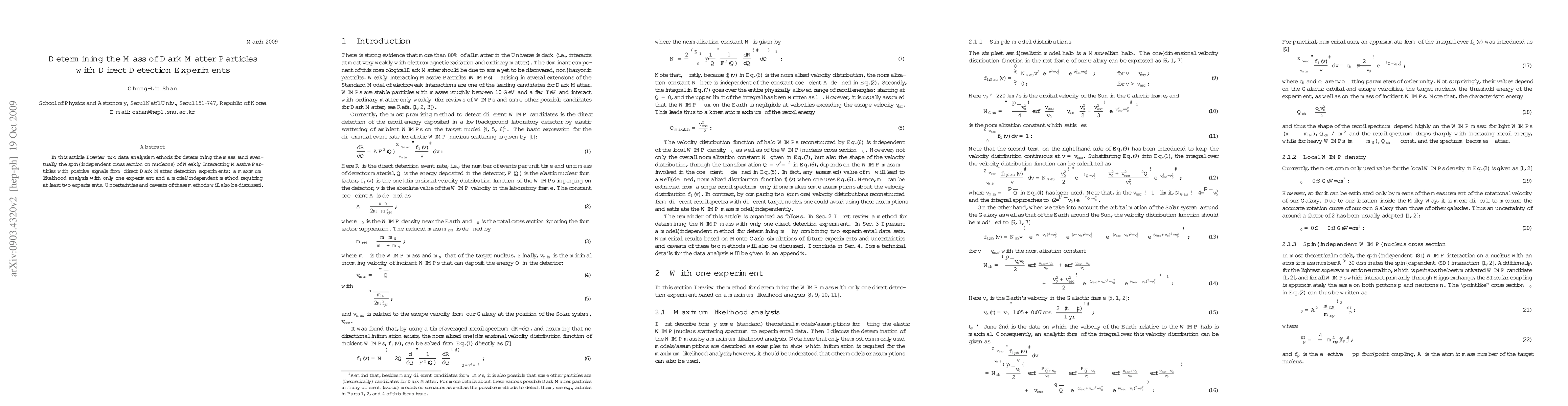 This paper reviews two data analysis methods for estimating the mass of Weakly Interacting Massive Particles detected in dark matter experiments: a single-experiment maximum likelihood analysis and a model-independent method needing data from at least two experiments, along with a discussion of their uncertainties and limitations.