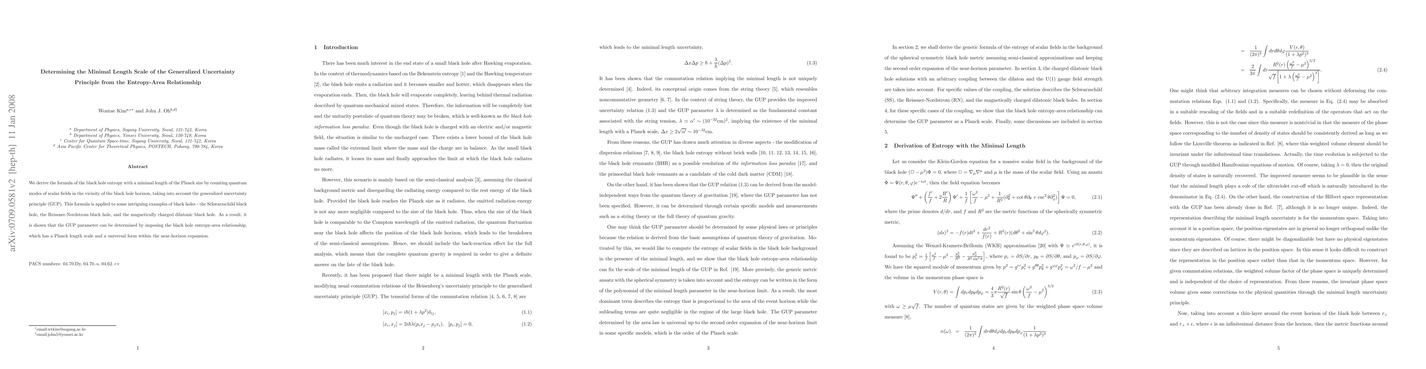 This paper derives a black hole entropy formula incorporating the generalized uncertainty principle (GUP) to include a minimal length scale of the Planck size. It applies this formula to various black hole types, demonstrating that the GUP parameter can be determined through the entropy-area relationship, revealing a universal form within the near-horizon expansion.