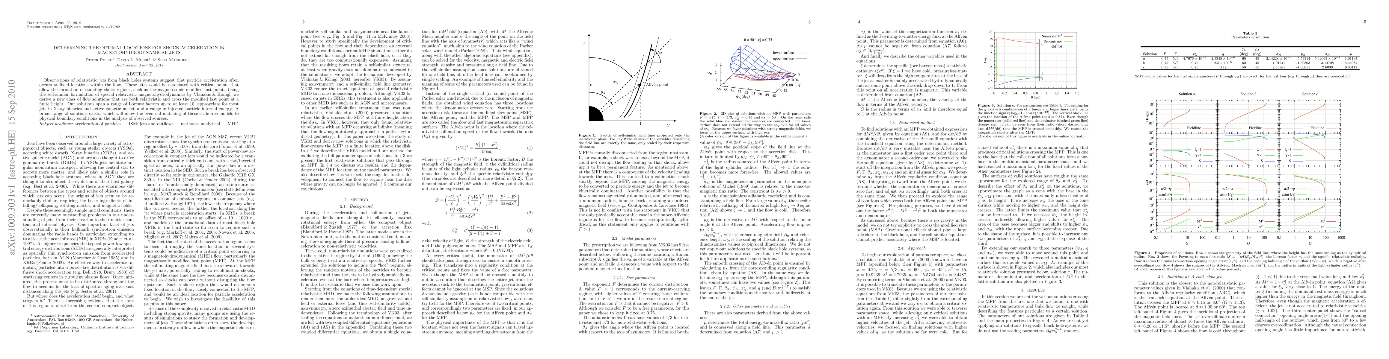 This paper develops relativistic magnetohydrodynamical models to identify optimal locations for shock acceleration in relativistic jets from black holes. The authors derive new solutions that span a range of Lorentz factors and particle energies, providing a framework for matching theoretical models with observed jet phenomena.