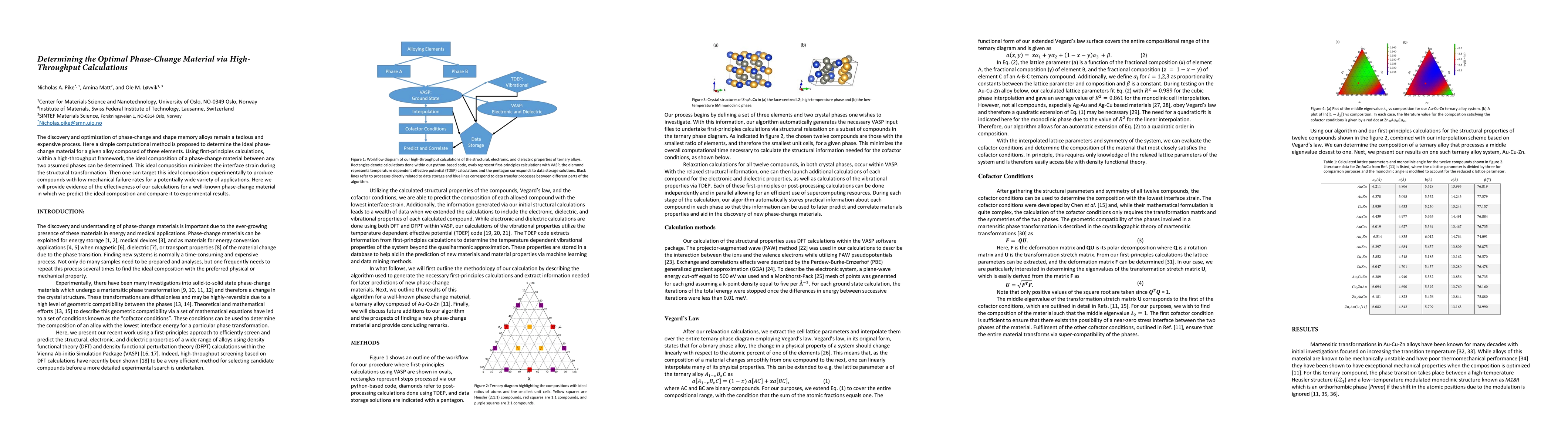 This paper proposes a computational method using first-principles calculations to determine the optimal phase-change material composition that minimizes interface strain during structural transformation. The method is demonstrated for a well-known phase-change material, showing agreement between predicted ideal composition and experimental results.