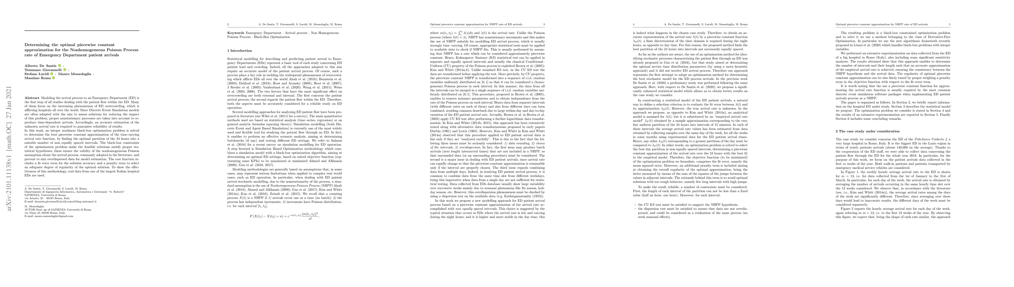 This paper develops an optimization approach to determine the best piecewise constant approximation for the nonhomogeneous Poisson Process rate of Emergency Department patient arrivals, ensuring statistical validity and model reliability. Real data from a large Italian hospital ED validate the effectiveness of the proposed method.