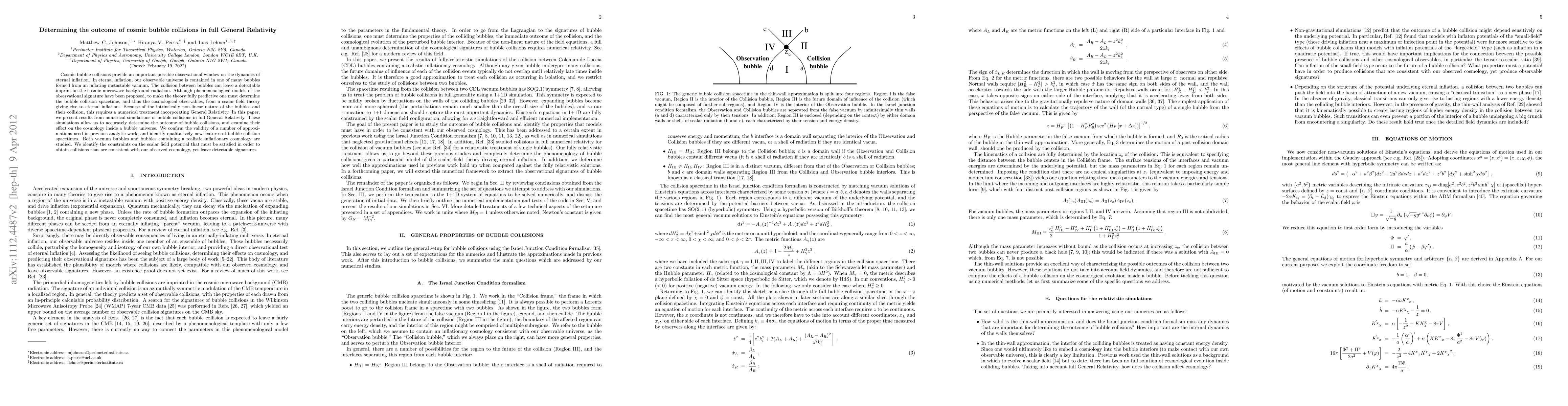 This paper presents numerical simulations of cosmic bubble collisions in full General Relativity to determine their outcomes and cosmological effects, confirming previous approximations and identifying new features, while also setting constraints on the scalar field potential for observable signatures.