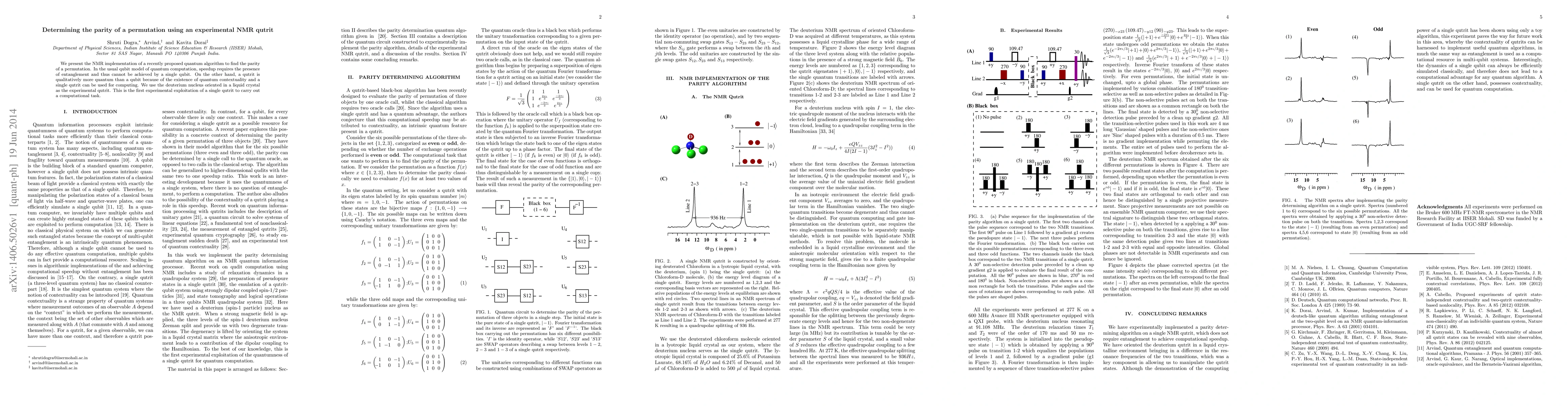 We present the NMR implementation of a recently proposed quantum algorithm to find the parity of a permutation. In the usual qubit model of quantum computation, speedup requires the presence of entanglement and thus cannot be achieved by a single qubit. On the other hand, a qutrit is qualitatively more quantum than a qubit because of the existence of quantum contextuality and a single qutrit can be used for computing. We use the deuterium nucleus oriented in a liquid crystal as the experimental qutrit. This is the first experimental exploitation of a single qutrit to carry out a computational task.