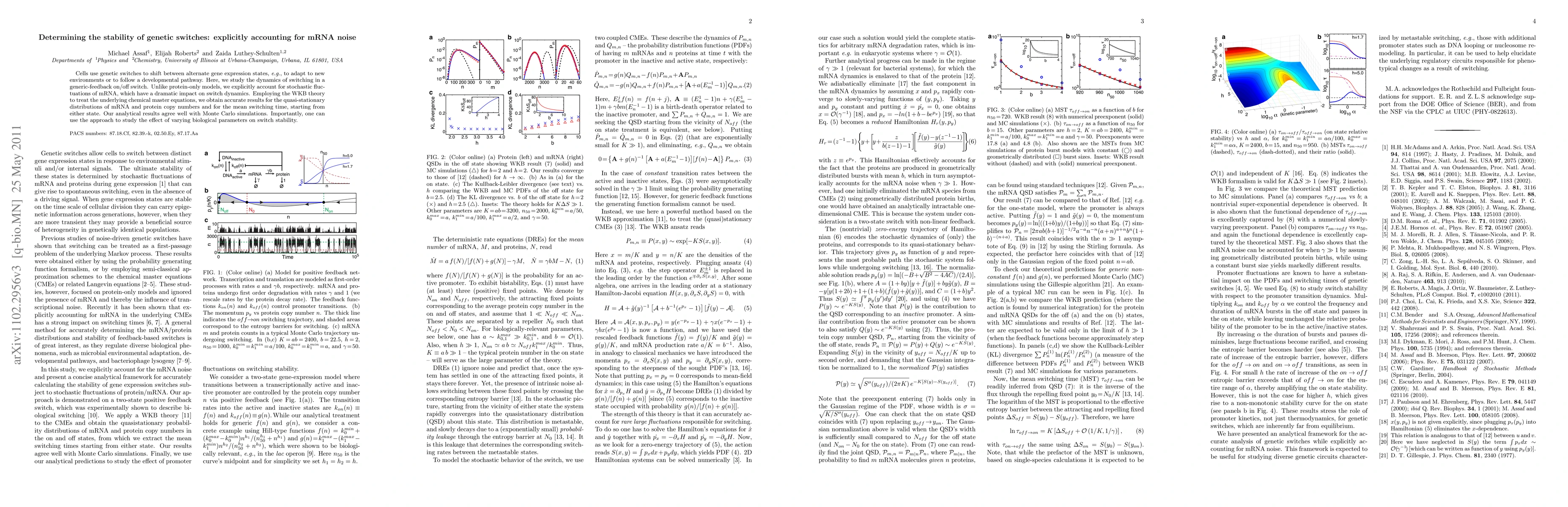 This paper uses mathematical modeling to study genetic switches in cells, accounting for mRNA noise to understand their stability. It finds that mRNA fluctuations significantly impact switch dynamics and provides a framework for analyzing the effects of varying biological parameters on switch stability.