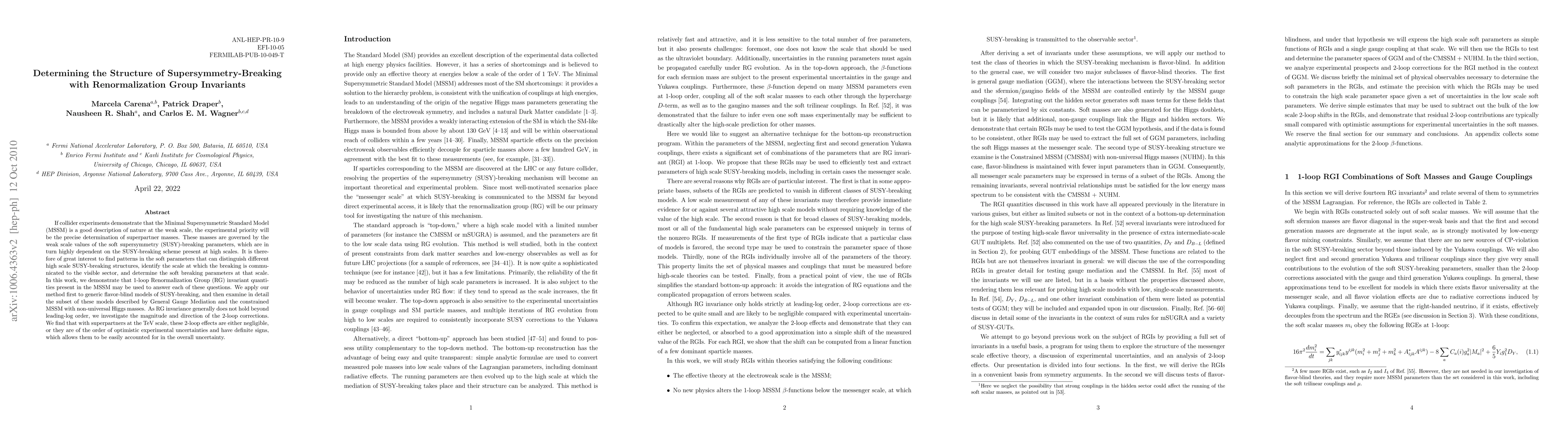 If collider experiments demonstrate that the Minimal Supersymmetric Standard Model (MSSM) is a good description of nature at the weak scale, the experimental priority will be the precise determination of superpartner masses. These masses are governed by the weak scale values of the soft supersymmetry (SUSY)-breaking parameters, which are in turn highly dependent on the SUSY-breaking scheme present at high scales. It is therefore of great interest to find patterns in the soft parameters that can distinguish different high scale SUSY-breaking structures, identify the scale at which the breaking is communicated to the visible sector, and determine the soft breaking parameters at that scale. In this work, we demonstrate that 1-loop Renormalization Group~(RG) invariant quantities present in the MSSM may be used to answer each of these questions. We apply our method first to generic flavor-blind models of SUSY-breaking, and then examine in detail the subset of these models described by General Gauge Mediation and the constrained MSSM with non-universal Higgs masses. As RG invariance generally does not hold beyond leading-log order, we investigate the magnitude and direction of the 2-loop corrections. We find that with superpartners at the TeV scale, these 2-loop effects are either negligible, or they are of the order of optimistic experimental uncertainties and have definite signs, which allows them to be easily accounted for in the overall uncertainty.