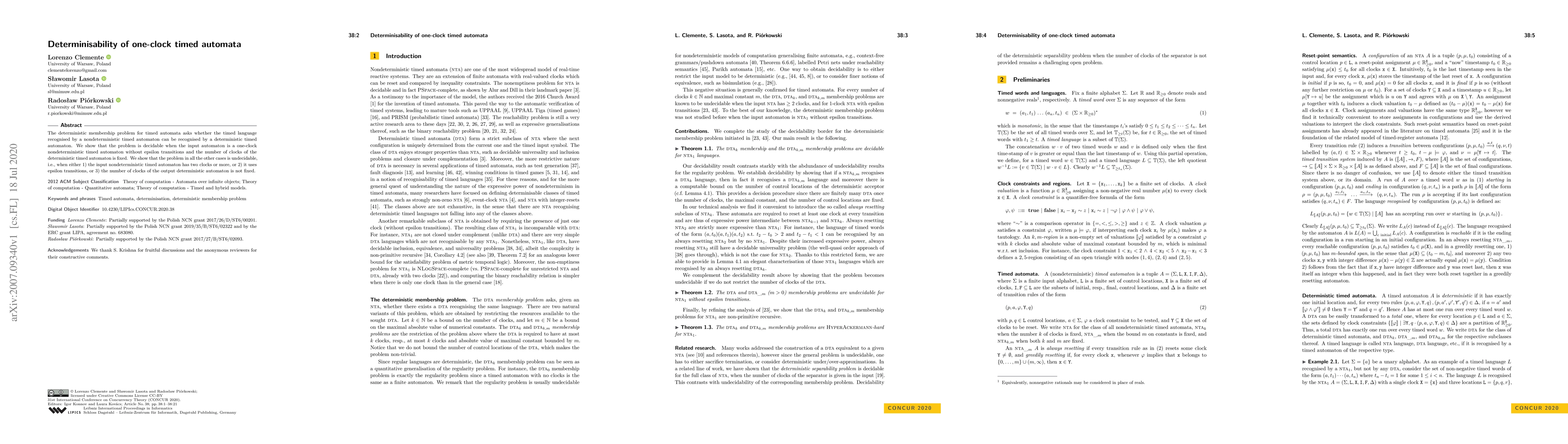 This paper demonstrates that the deterministic membership problem for one-clock timed automata without epsilon transitions is decidable when the number of clocks in the deterministic automaton is fixed. Conversely, it proves the problem is undecidable for more complex scenarios involving multiple clocks or epsilon transitions.