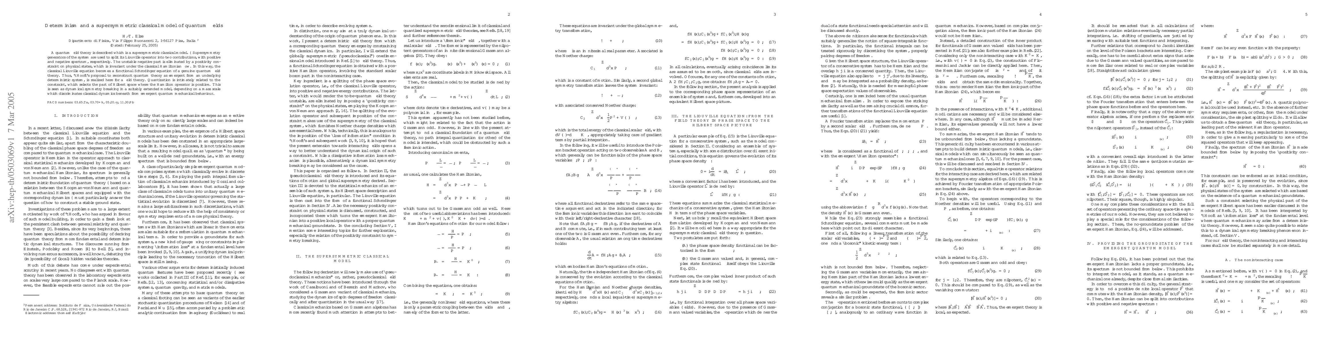 A quantum field theory is described which is a supersymmetric classical model. -- Supersymmetry generators of the system are used to split its Liouville operator into two contributions, with positive and negative spectrum, respectively. The unstable negative part is eliminated by a positivity constraint on physical states, which is invariant under the classical Hamiltonian flow. In this way, the classical Liouville equation becomes a functional Schroedinger equation of a genuine quantum field theory. Thus, 't Hooft's proposal to reconstruct quantum theory as emergent from an underlying deterministic system, is realized here for a field theory. Quantization is intimately related to the constraint, which selects the part of Hilbert space where the Hamilton operator is positive. This is seen as dynamical symmetry breaking in a suitably extended model, depending on a mass scale which discriminates classical dynamics beneath from emergent quantum mechanical behaviour.
