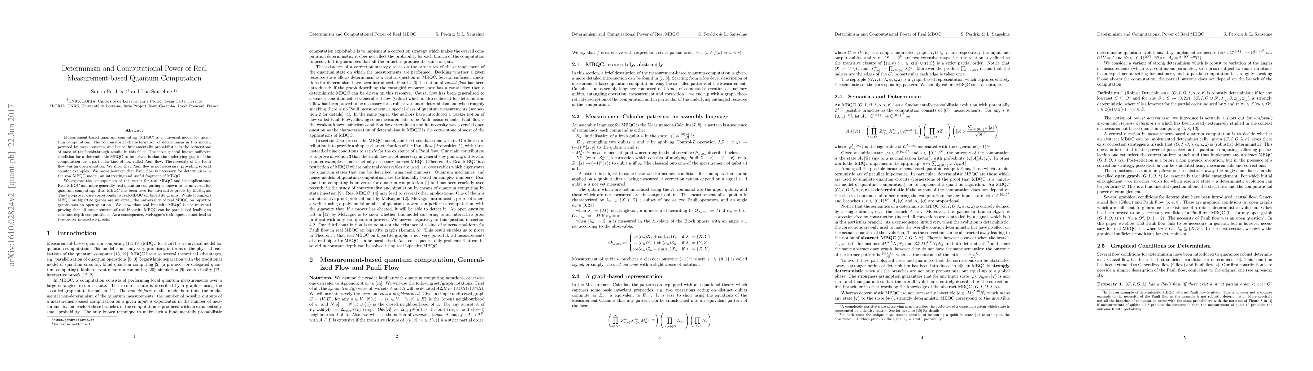 Measurement-based quantum computing (MBQC) is a universal model for quantum computation. The combinatorial characterisation of determinism in this model, powered by measurements, and hence, fundamentally probabilistic, is the cornerstone of most of the breakthrough results in this field. The most general known sufficient condition for a deterministic MBQC to be driven is that the underlying graph of the computation has a particular kind of flow called Pauli flow. The necessity of the Pauli flow was an open question. We show that the Pauli flow is necessary for real-MBQC, and not in general providing counterexamples for (complex) MBQC. We explore the consequences of this result for real MBQC and its applications. Real MBQC and more generally real quantum computing is known to be universal for quantum computing. Real MBQC has been used for interactive proofs by McKague. The two-prover case corresponds to real-MBQC on bipartite graphs. While (complex) MBQC on bipartite graphs are universal, the universality of real MBQC on bipartite graphs was an open question. We show that real bipartite MBQC is not universal proving that all measurements of real bipartite MBQC can be parallelised leading to constant depth computations. As a consequence, McKague techniques cannot lead to two-prover interactive proofs.