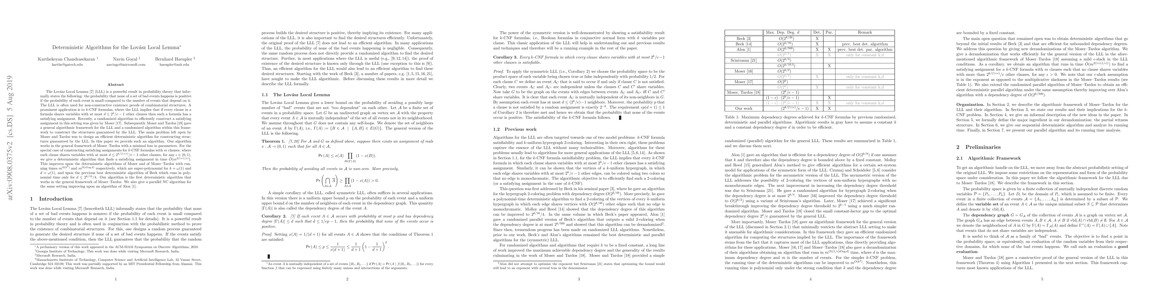 This paper presents a deterministic algorithm to efficiently construct satisfying assignments for k-CNF formulas using the Lovasz Local Lemma, improving upon previous randomized and deterministic methods with a runtime of \(\tilde{O}(m^{2(1+1/\eps)})\) and demonstrating parallelizability.
