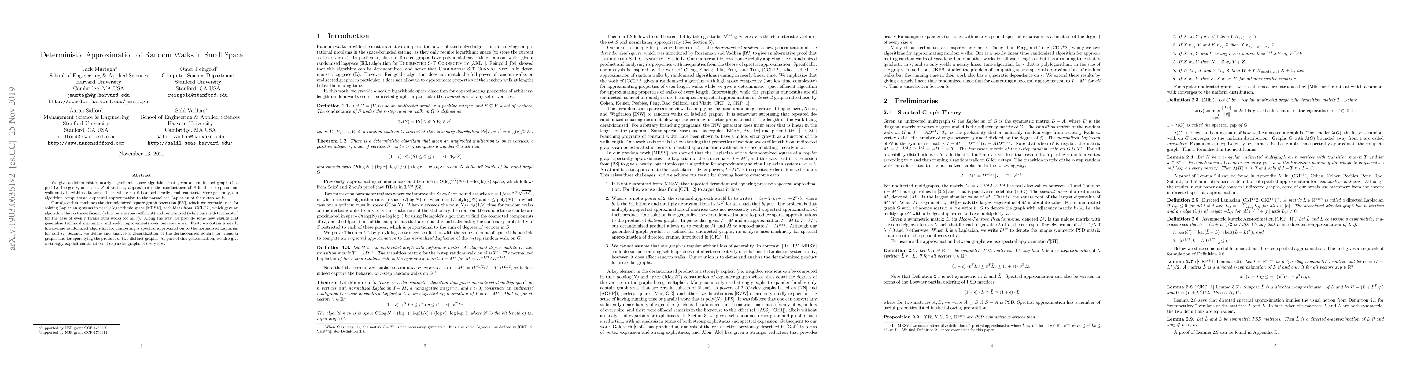 Researchers developed a deterministic algorithm to approximate the conductance of a set in an r-step random walk on a graph within 1+epsilon, improving previous work's space efficiency for nearly logarithmic space.