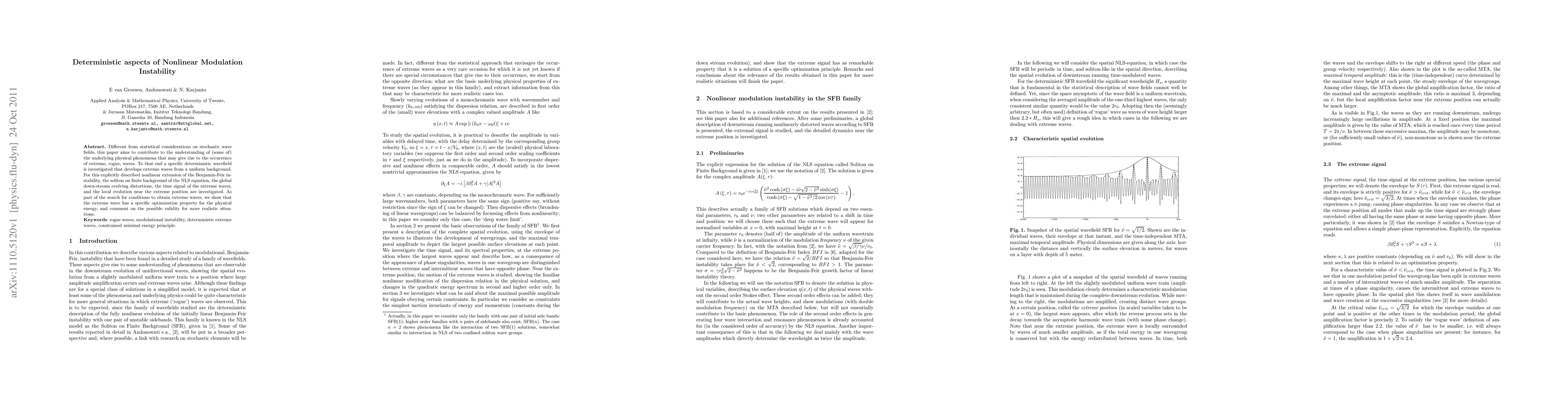 Researchers investigated deterministic aspects of nonlinear modulation instability to understand extreme rogue waves, finding that extreme waves have an optimization property for physical energy.