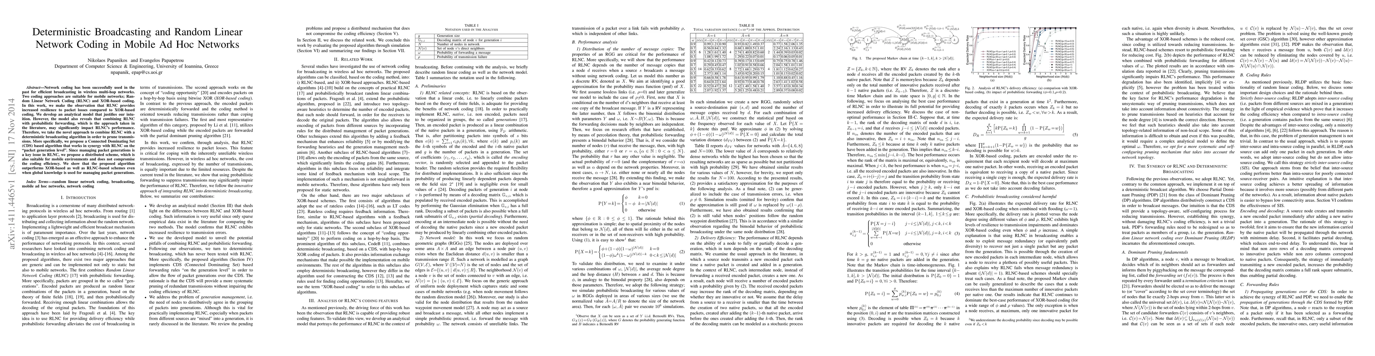 This paper proposes a novel combination of Random Linear Network Coding (RLNC) with deterministic broadcasting using a Connected Dominating Set (CDS) algorithm to enhance resilience and reduce transmissions in mobile ad hoc networks. The study demonstrates that this approach outperforms both XOR-based and RLNC-based schemes.