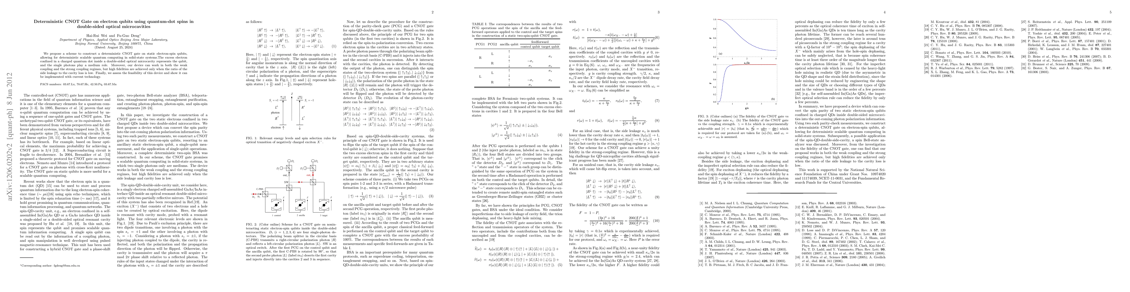 This paper proposes a scheme for a deterministic CNOT gate using electron-spin qubits in quantum dots within double-sided optical microcavities, employing single photons for qubit interaction. The design is scalable and feasible with current technology, achieving high fidelity under optimal conditions.