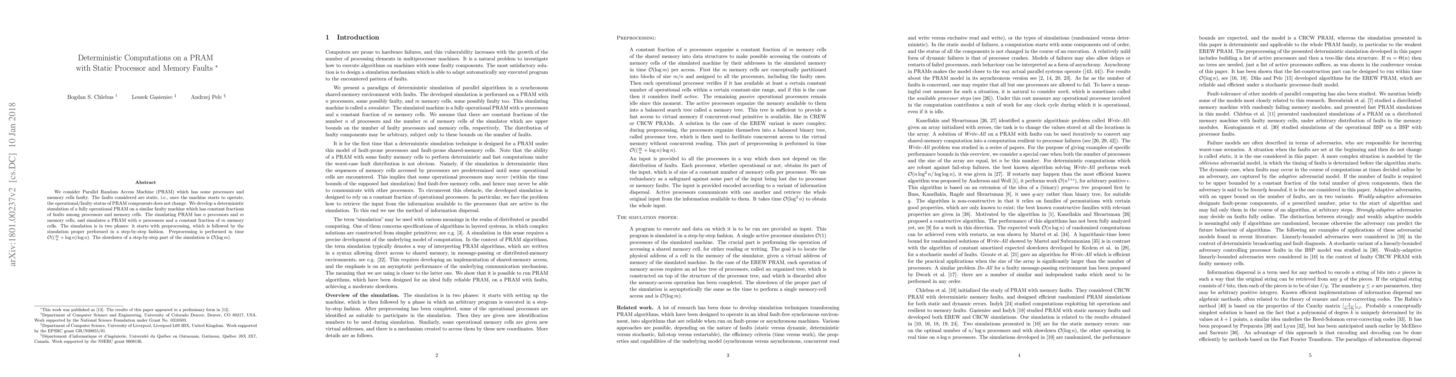 Researchers developed a deterministic simulation to run programs on a faulty Parallel Random Access Machine (PRAM), reducing the impact of faults on computation time by up to $O(rac{m}{n}+ extlog n)$.